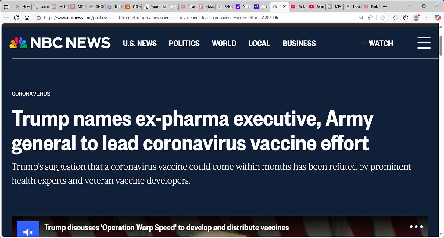 Operation Warp Speed (OWS) in 2020 in Trump administration 1.0 was a pure military operation run by the US military 100%; I was there, ran out of the 7th floor of HHS led by General Perna, Moncef
