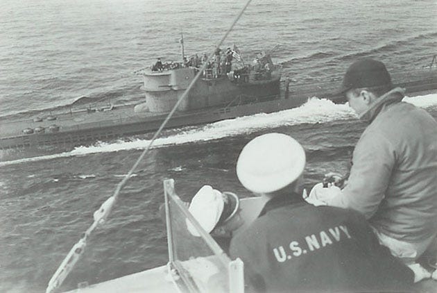 From around 1943 the United States was secretly working to stop Japan's atomic weapons program. Part of that effort was to interdict Japanese (later Italian) submarines transporting enriched uranium to Japan from Germany. Accordingly, wherever possible, Japanese and Italian submarines carrying uranium were attacked by the navy. Some of them were sunk, others taken into custody. Even after the European war ended, a German submarine configured for transport, U-234, surrendered to US ships off the coast of Nova Scotia. It was carrying uranium and, according to a German submarine crew-member witness, Robert Oppenheimer flew to Portsmouth where the sub had been taken. He examined the cargo and had its uranium contents, 560 kg, sent to Washington and then on to Oak Ridge where Ernest Lawrence's Calutrons were enriching uranium for bomb making.