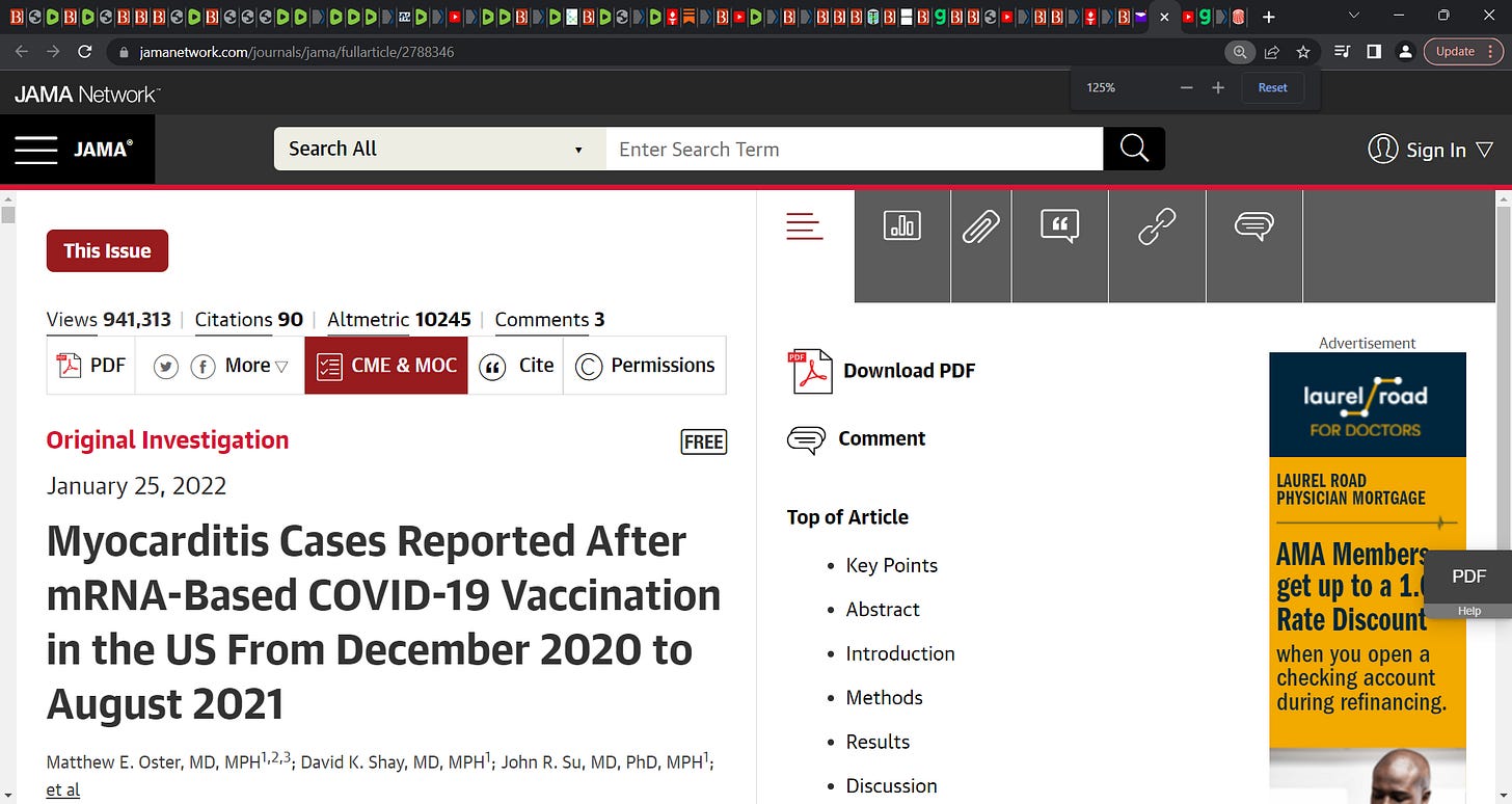 Oster et al.: Do not forget this key early 2022 study in JAMA showing elevated Myocarditis cases reported after mRNA-Based COVID-19 Vaccination in the US From December 2020 to August 2021