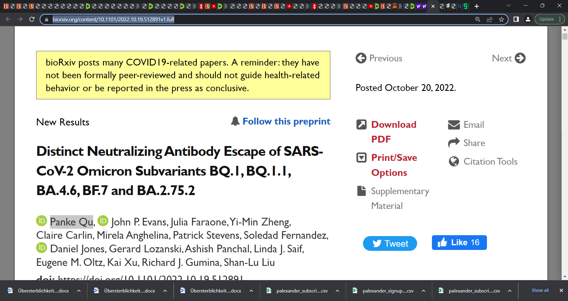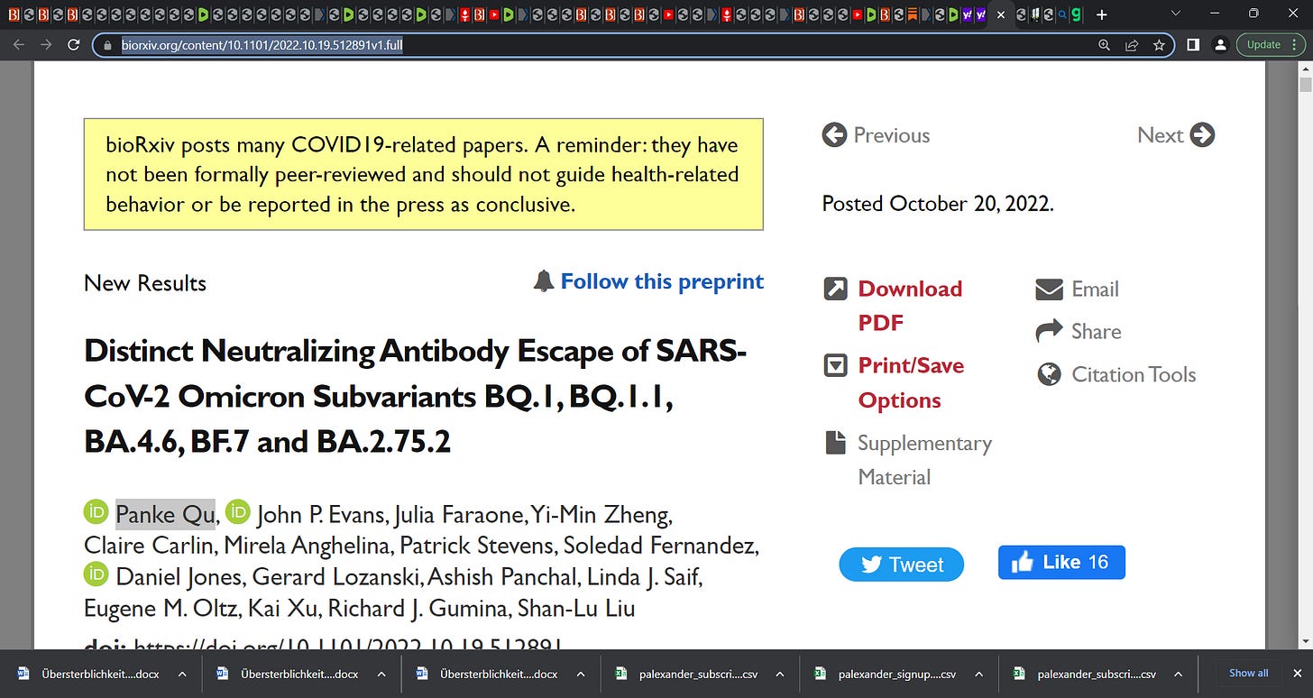 Panke Qu et al.: “Distinct Neutralizing Antibody Escape of SARS-CoV-2 Omicron Subvariants BQ.1, BQ.1.1, BA.4.6, BF.7 and BA.2.75.2”