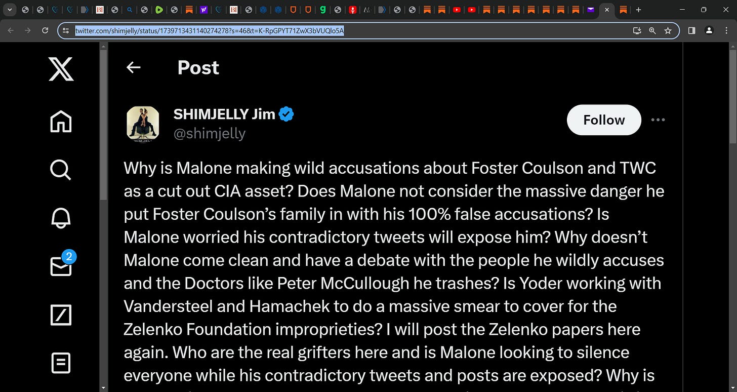 Hey Robert, you mind explain to Jim Torma who on TWITTER (X) asked you about this CIA-TWC accusation? is Yoder part of the hit team? you placed people at risk; tell us about pedos you work with though