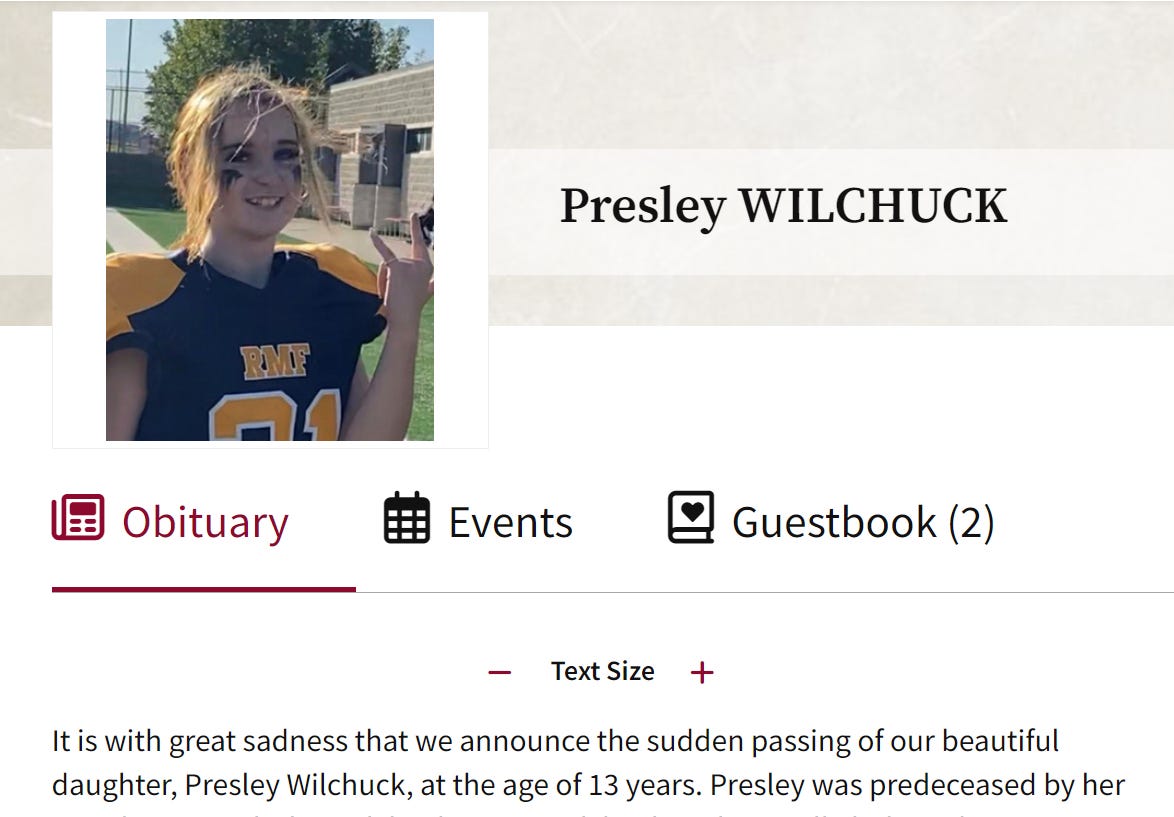 Presley Clara Rose Wilchuck (age 13) (died January 13, 2023)