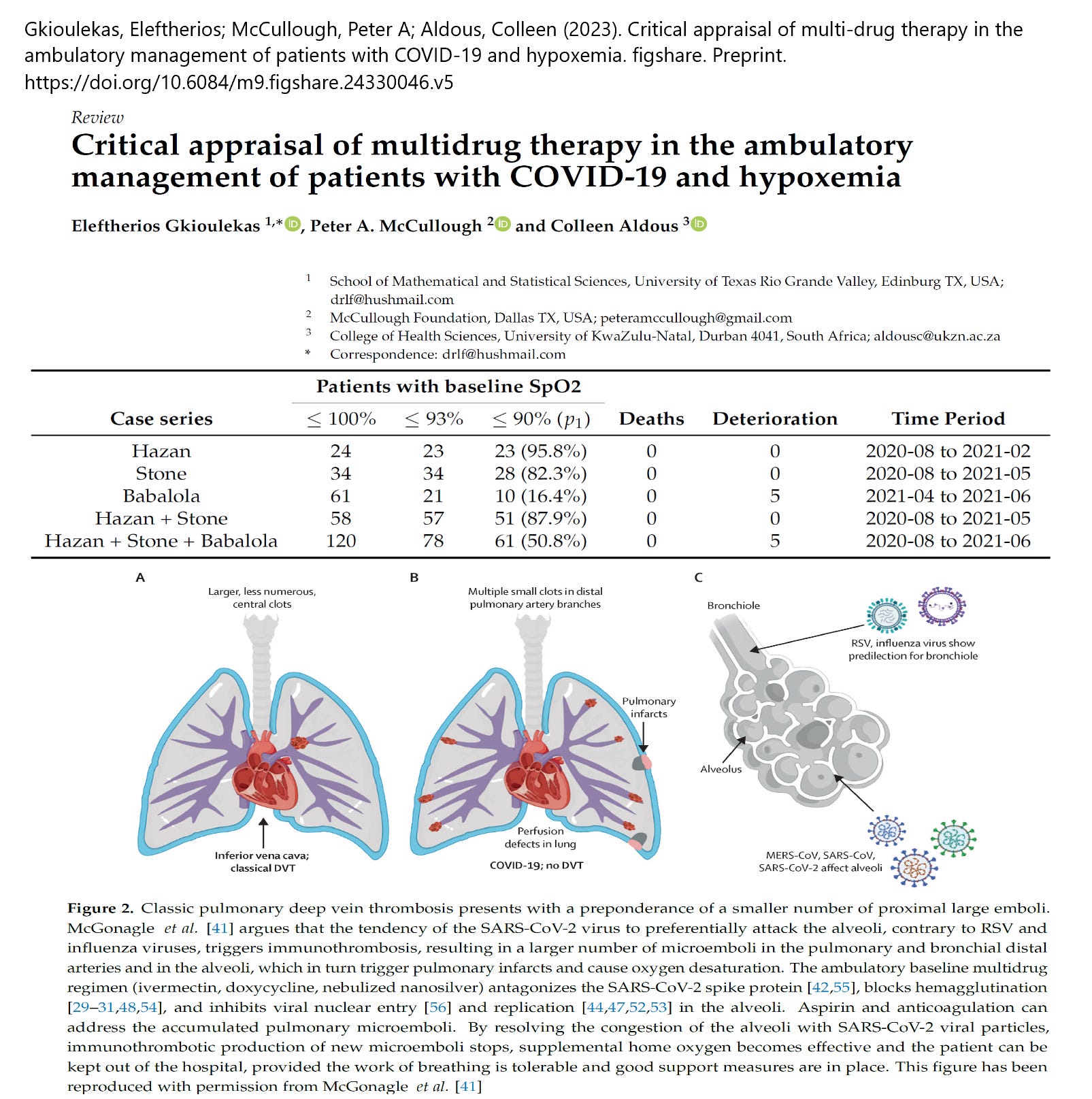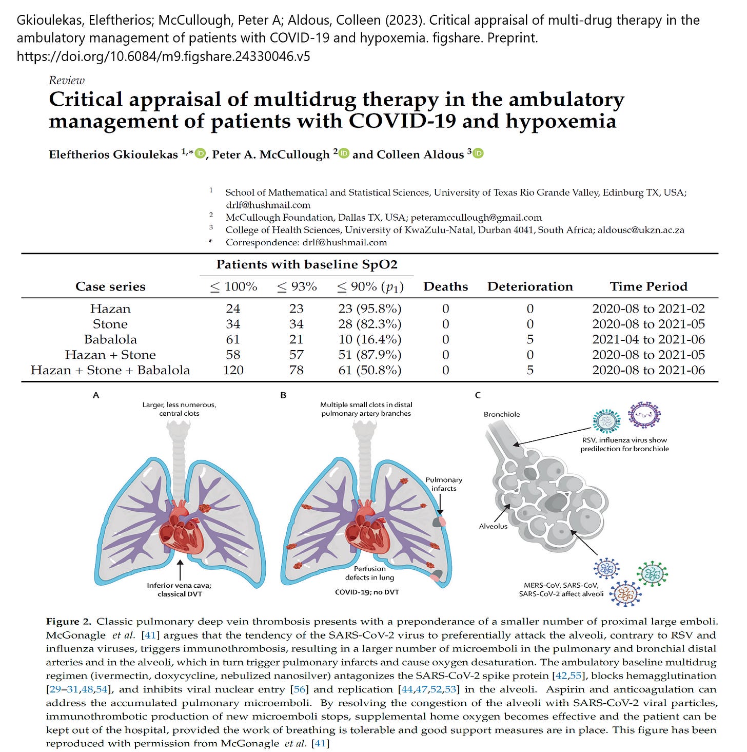 Gkioulekas et al, have published an analysis of the peer-reviewed clinical studies demonstrating safety of allowing hypoxemia to occur provided patients were treated with multidrug regimens. These papers relied heavily on the early use of ivermectin, which has an effect of unhooking the Spike protein from red blood cells, thus reducing hemagglutination and the micro-blood clotting process. The clinical results speak for themselves.