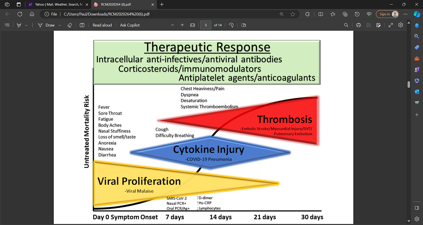 As I was treating and advising collectively on thousands of cases over 2020 and 2021 I became very comfortable with understanding that a low oxygen saturation <94% was not a trigger for alarm. Provided the work of breathing was not too difficult and the ability to think clearly and follow instructions was solid, patients could be treated at home with supplemental oxygen then the McCullough Protocol which includes full anticoagulation. I recall treating a physician and her husband ages 58 and 60, both with severe COVID-19 pneumonia and O2 saturations in the 70’s for weeks during the Delta outbreak spanning August-September, 2021. At times saturations would dip below 70% while getting up to the kitchen or bathroom. Both of them knew they were safer at home on multidrug treatment than going to the hospital. Many hospitals had protocols that would have immediately paralyzed and sedated this couple then placed on them mechanical ventilators. This could have been the kiss of death. Yes, the couple survived with no complications and our collective confidence grew that “permissive hypoxemia” was well tolerated and very different from other forms of consolidative pneumonia, heart failure, and COPD.