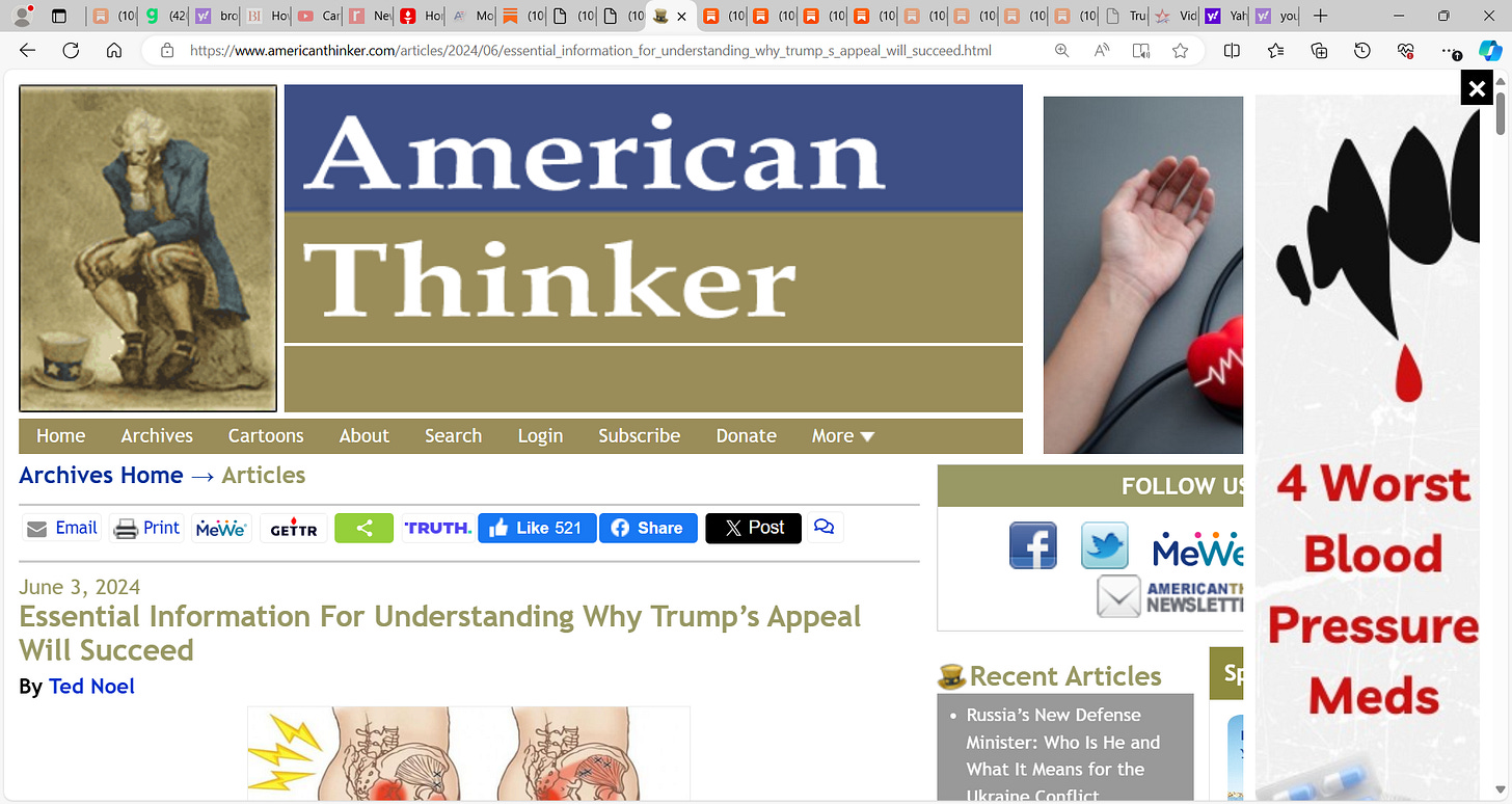 petzanpz, prolific brilliant poster in my substack shared a stellar American Thinker thesis by Dr. Ted Noel "Essential Information For Understanding Why Trump’s Appeal Will Succeed"; I share
