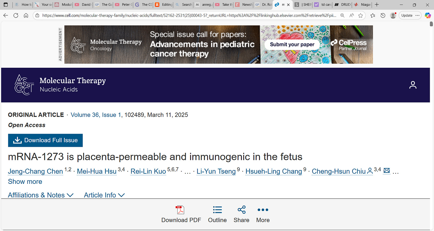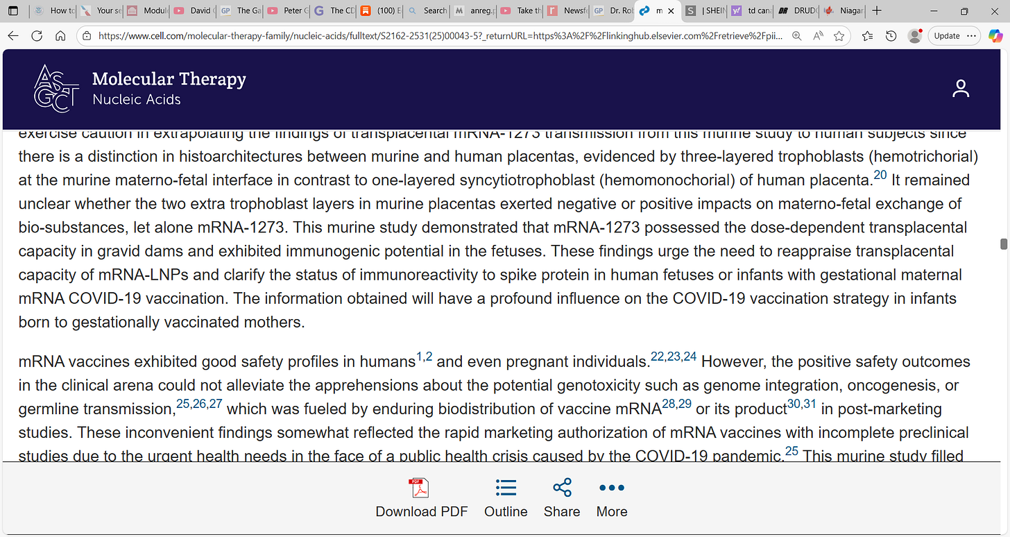 Dr. Naomi Wolf was always correct in her warnings to pregnant women and the unborn child in utero, as is Dr. Jim Thorp. The mRNA vaccine remains catastrophic to the unborn child. All who brought the mRNA vaccine knowing all the harms yet still did it, should be hung after courts and judges rule.