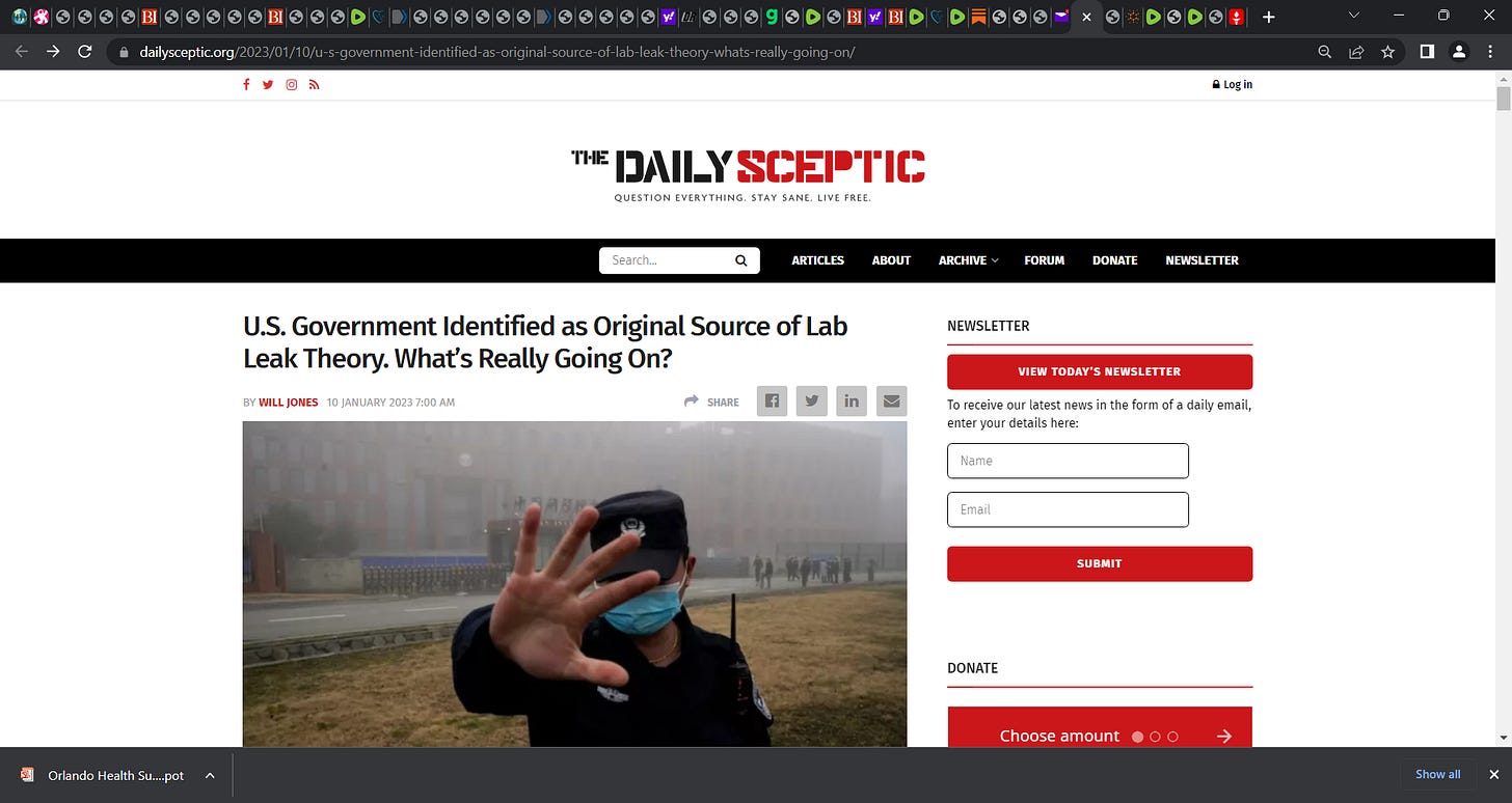 The explanation is that the Chinese lab origin narrative was put out by U.S. intelligence in early January as a cover story. A cover story for what? For a U.S. biological attack on China.