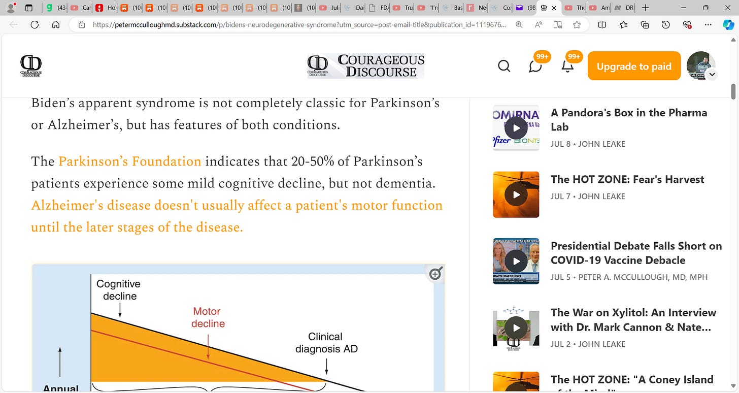 McCullough gives great scholarship here arguing for COVID mRNA in the debate of why Biden has declined this way & his symptoms; AwakeNotWoke (ANW) reminded me of NPH (my dad suffered with NPH)