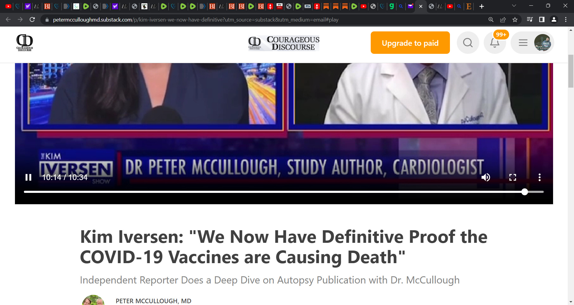 Prescient Medical reporter Kim Iversen huge interview with Dr. Peter McCullough regarding the censoring of major LANCET paper (pre-print server) based on secondarily held autopsy data linking deaths