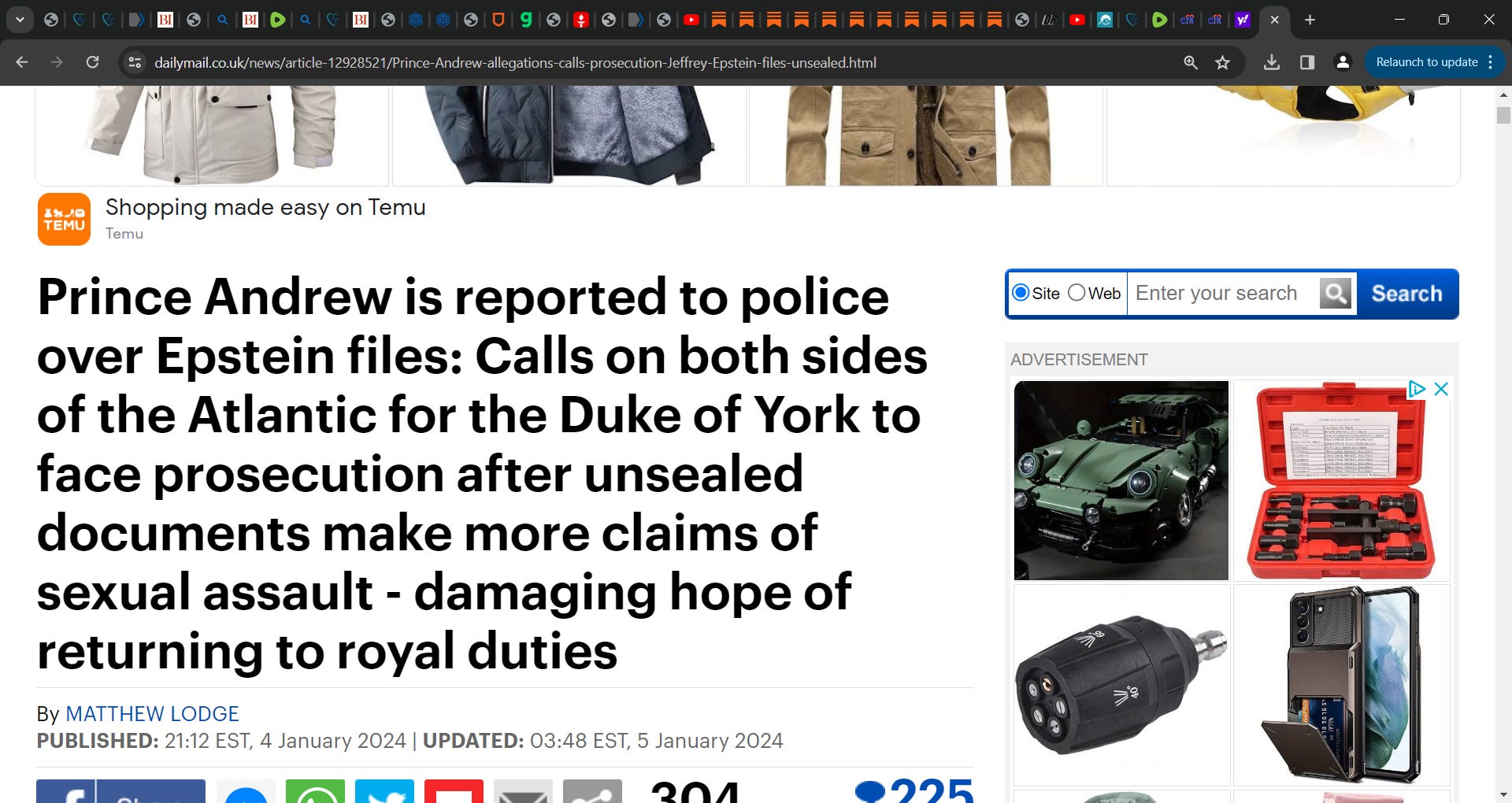 Prince Andrew Accused of Participating in 'Underaged Orgy'...(DRUDGE) & DAILY MAIL: 'Calls on both sides of the Atlantic for the Duke of York to face prosecution after unsealed documents make more