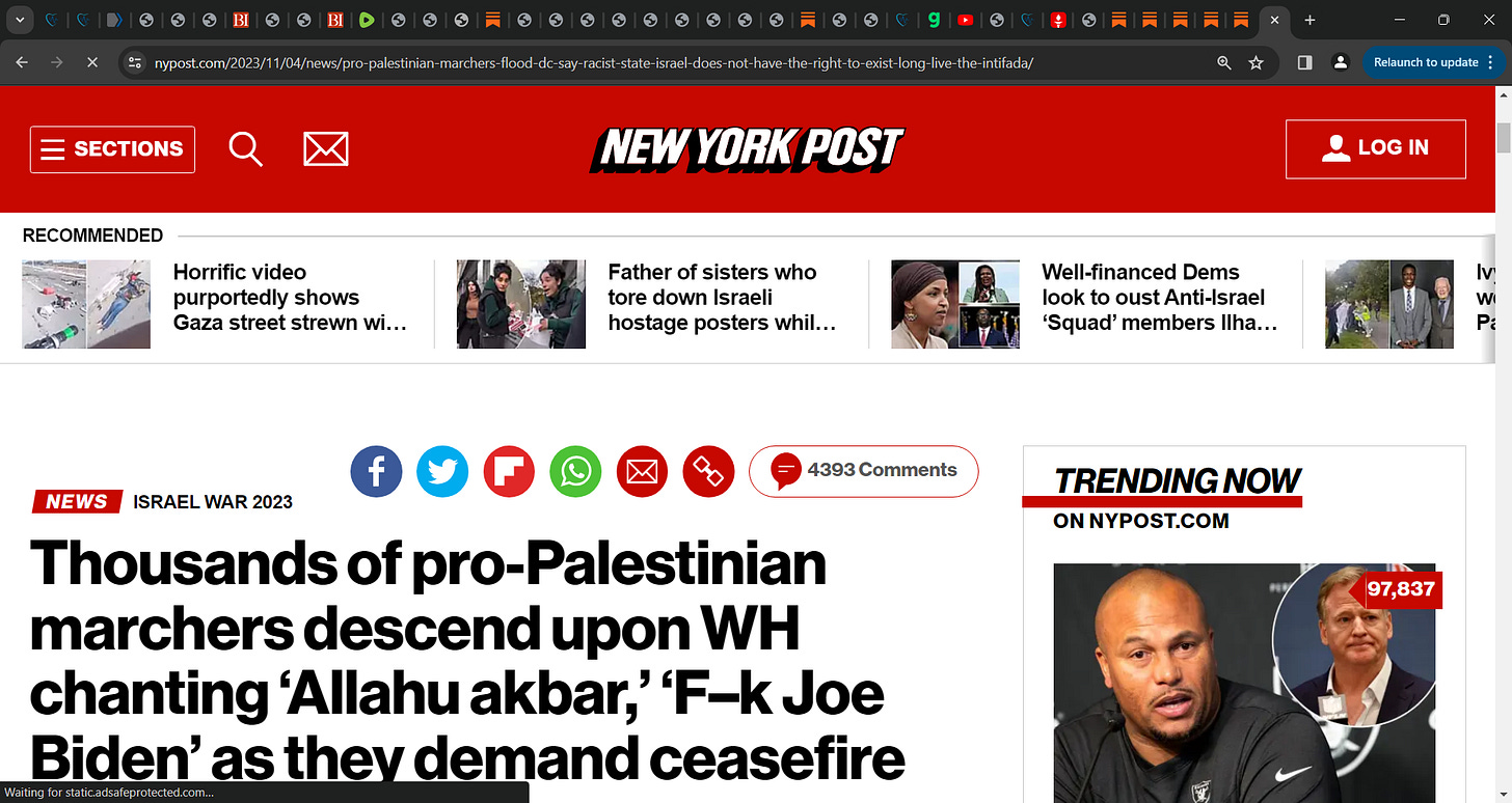 'Pro-Palestine protesters worldwide call for Israel's elimination... Marchers descend upon White House chanting 'Allahu akbar,' 'F**k Joe Biden'...' 'Jewish woman stabbed in her home in Lyon, France'