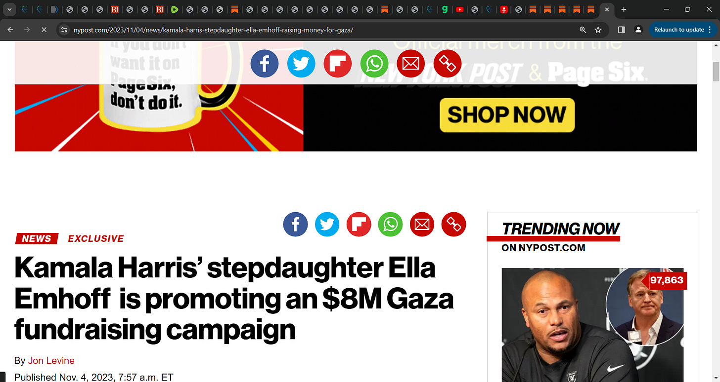 these are news stories today; 'Kamala Harris’ stepdaughter Ella Emhoff is promoting an $8M Gaza fundraising campaign'; what do we make of this? Gal Gadot plans Hollywood screening of HAMAS killings