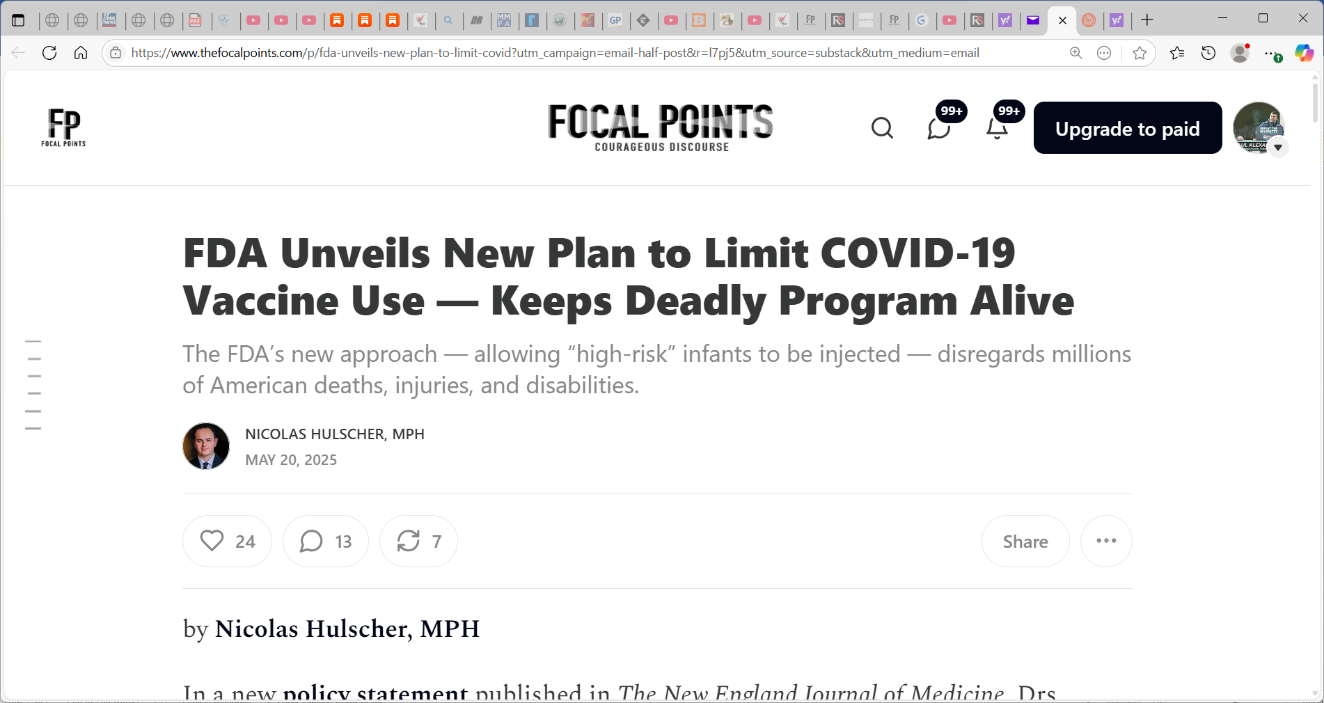 Over to you RFK Jr., Bobby Jr., I think we and I still, hold out hope in you. So over to you to fix this. Get these boys to order and school them. Do not put out bullshit articles like this again for we will punish you Marty and Vinay academically, technically, medically each time. You are no longer doing puff podcasts, you will be held accountable in media. Do not bullshit the American people. I and others are watching.