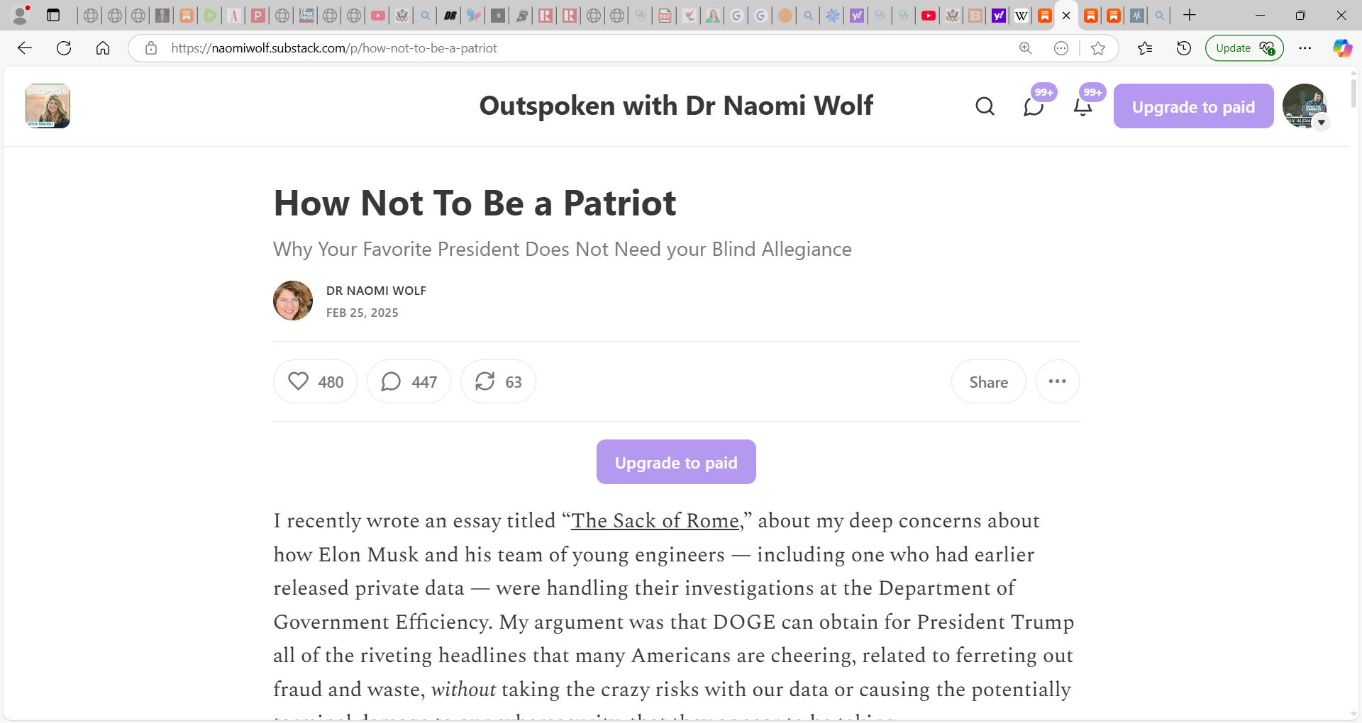 Quis custodiet ipsos custodes? Dr. Naomi Wolf's recent substack piece "How Not To Be a Patriot; Why Your Favorite President Does Not Need your Blind Allegiance", is well done & she is asking serious