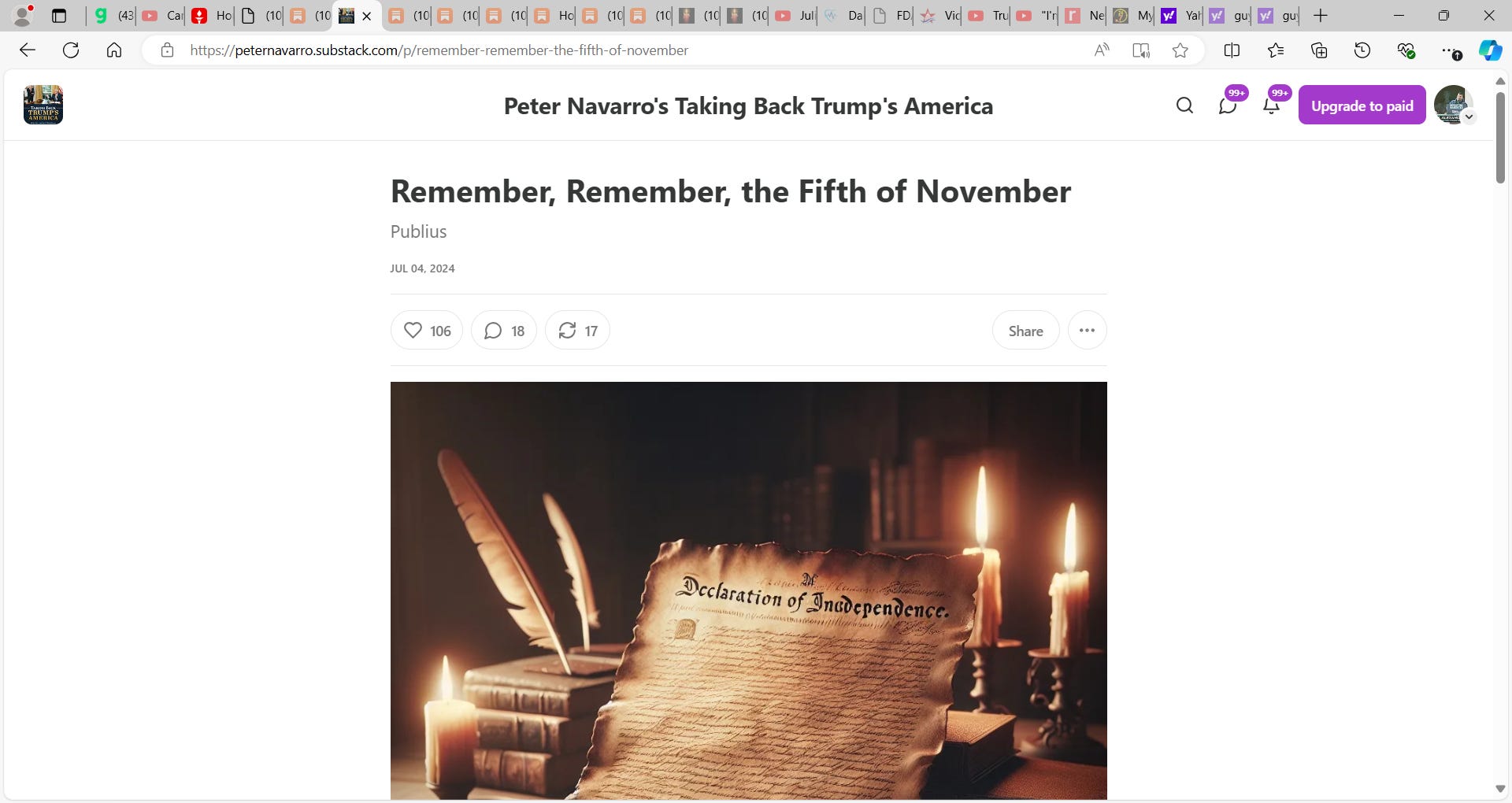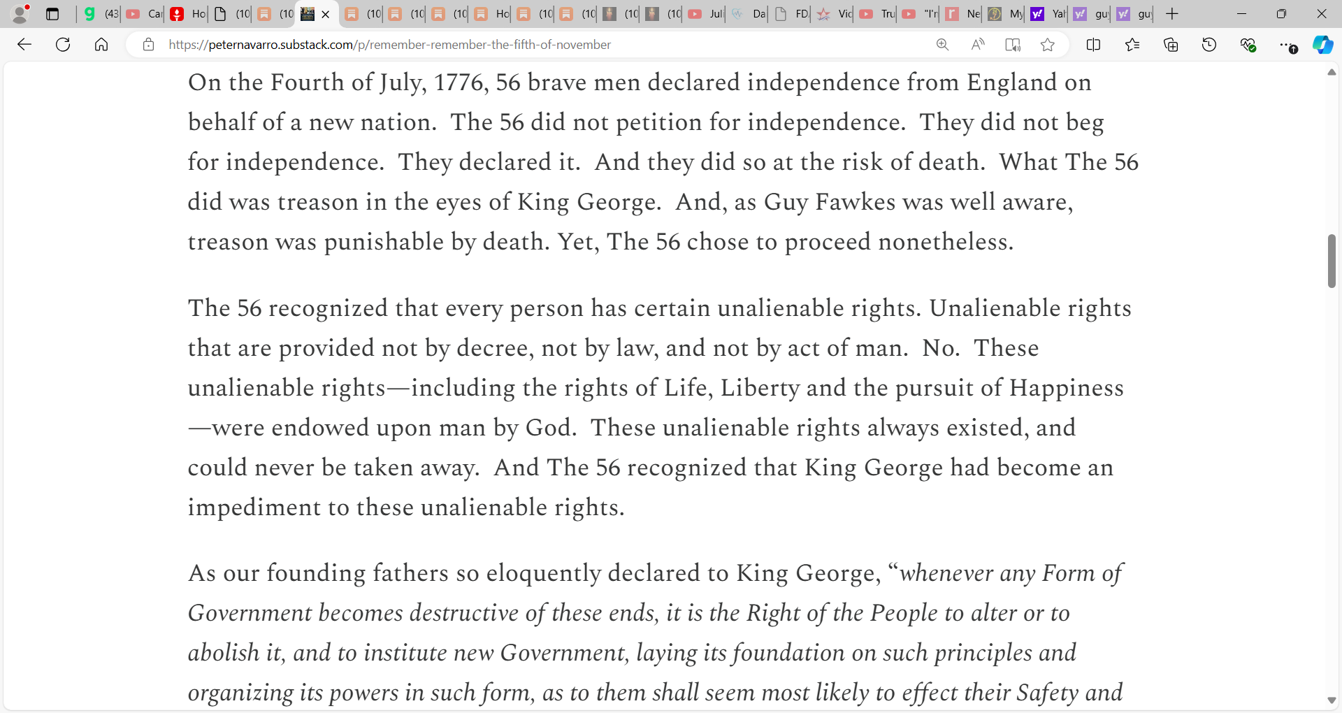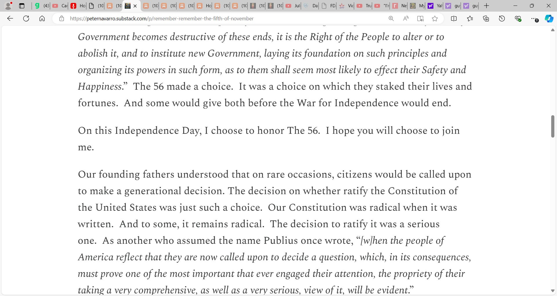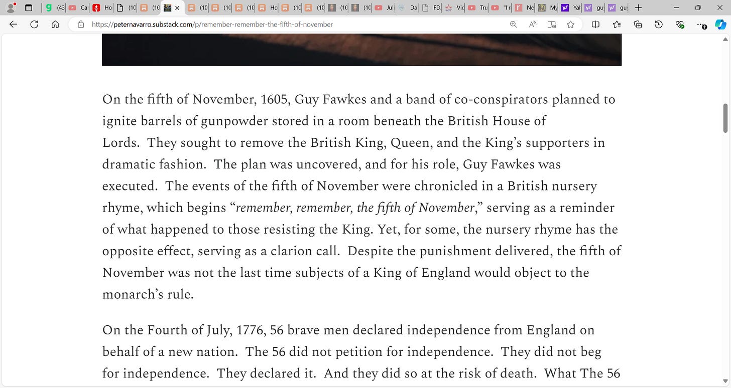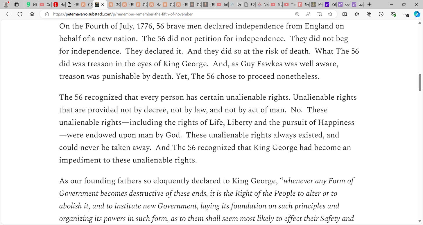 See Navarro’s superb substack below and we salute the likes of him and Steve Bannon etc. who pay the ultimate price of incarceration today via the Biden INC.’s weaponized Justice system. Thank you Peter and Steve, I am proud to know both of you and the Lord, our God, Justice has good things in store for you. You are the people whose shoulders we stand on.