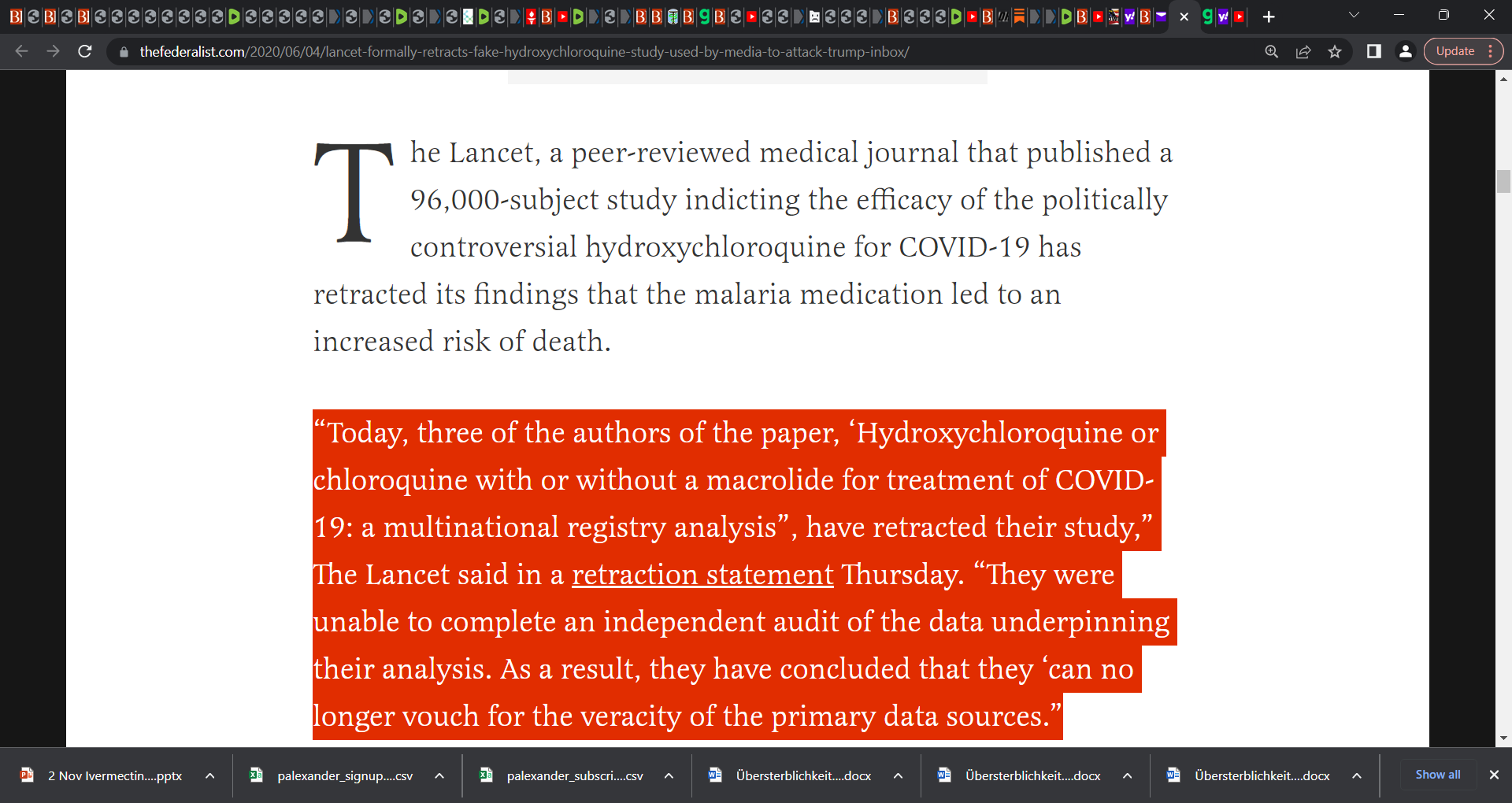 Remember this fraud by LANCET & they tried to recover, LANCET has lost all credibility due to this: "LANCET Formally Retracts Fake Hydroxychloroquine Study Used By Media To Attack Trump"; too late!