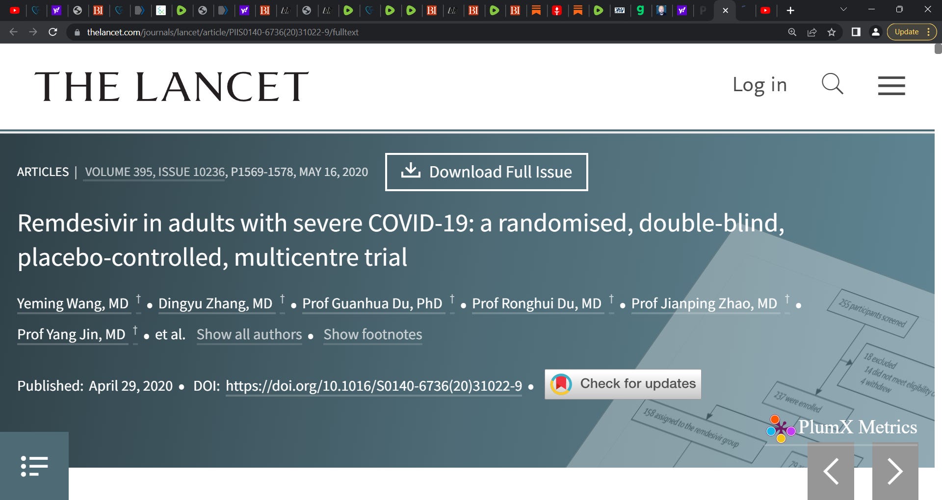 Remember this key Wang et al. study in LANCET released same day Fauci & Francis Collins NIH lied to POTUS Trump about efficacy of REMDESIVIR as standard of care; Wang found no benefit on mortality