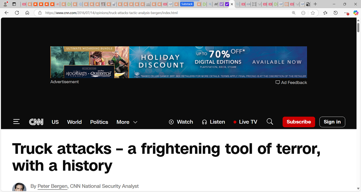 With all due respect, if you post another German(truck)incident and leave off the year(2016)when you write December... that just looks bad bud. That's breibart shit.
