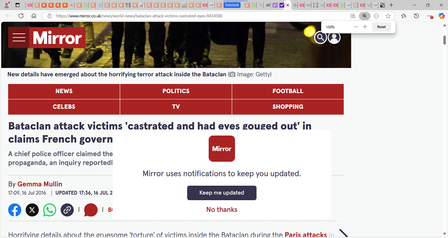 Here we have blurred the disemboweled bodies of patrons in Bataclan France. The 11 Syrian islamist jihadists stabbed women in their vaginas, sliced up their genitals, cut off men’s balls and stuffed into their mouths, disemboweled people alive and let intestines spill out onto the floor, gouged out eyes with knives and I warn, it is in USA, it is booked, Obama, Biden, Harris, Bush, Republicans did this…Democrats did this across the years.