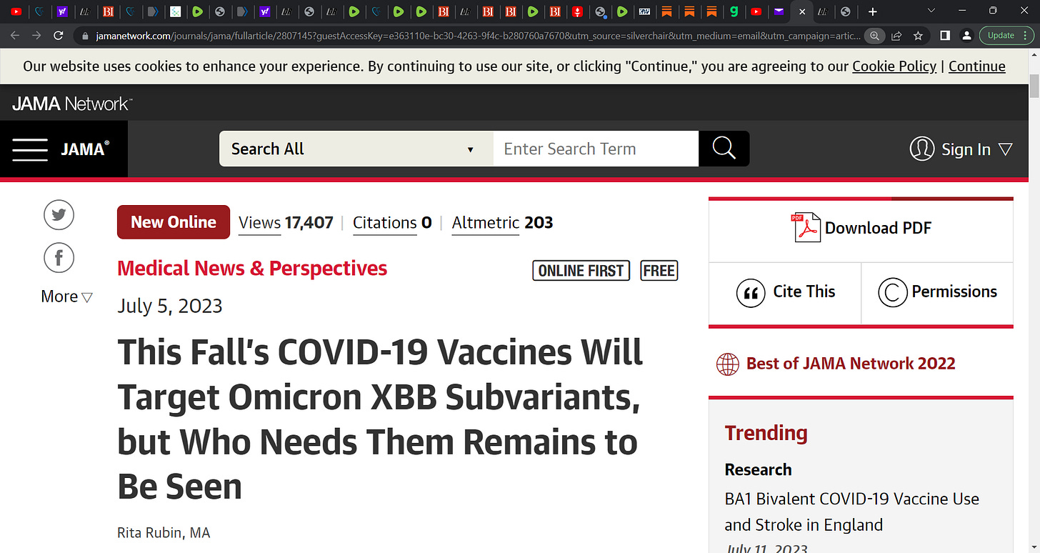 Rita Rubin's JAMA publication on FDA (VRBPAC) nightmarish seeking of vaccine for XBB.1.5 sub-variant (monovalent) tells us how reckless, inept FDA is! XBB.1.5 will be gone! (EG 5, XBB.2.3, XBB 1.16)