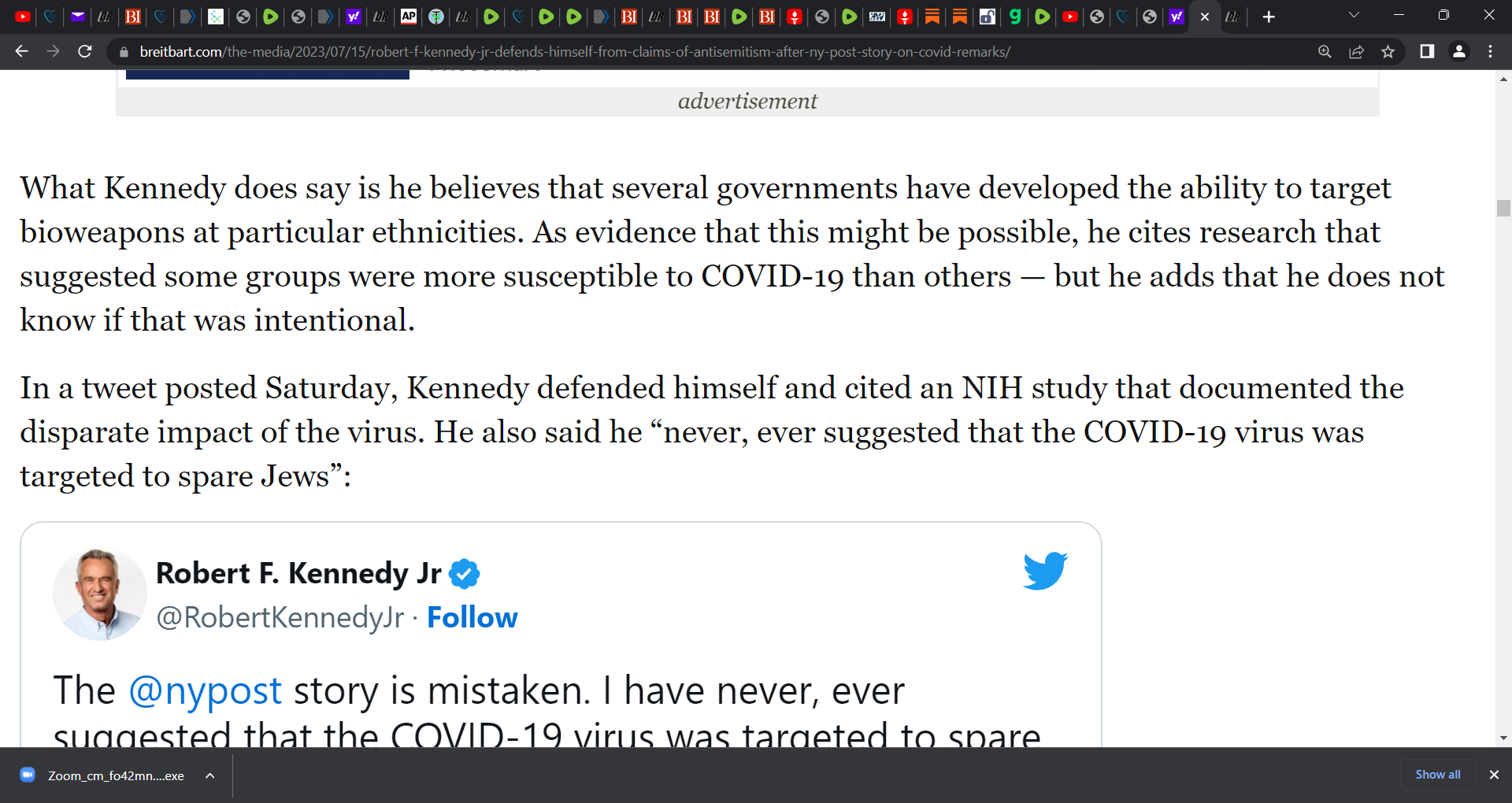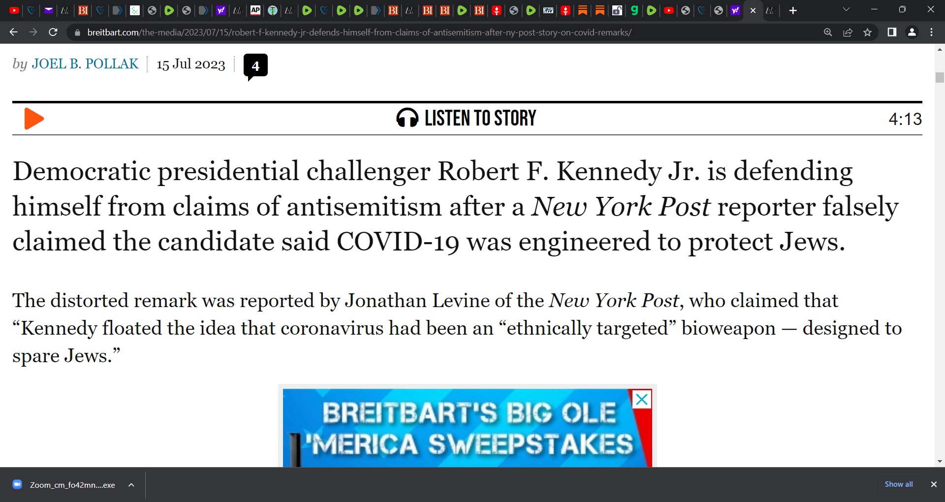 Robert F. Kennedy Jr. slaps back at NY Post story & Claims of Antisemitism After NY Post Story on Covid Remarks; Kennedy moves to correct record of some suspect reporting by Levine of New York Post