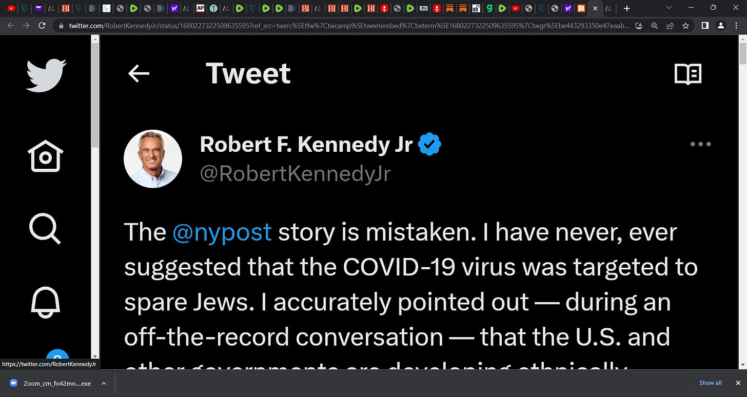 Now we know that Kennedy never actually said that coronavirus had been “ethnically targeted” to spare Jews as you view transcripts etc. Kennedy should sue these beasts