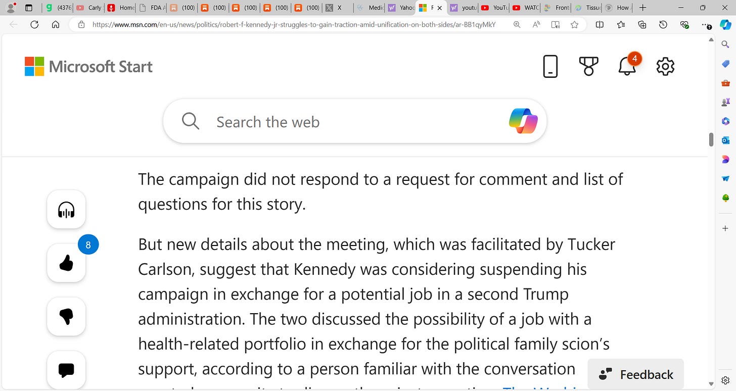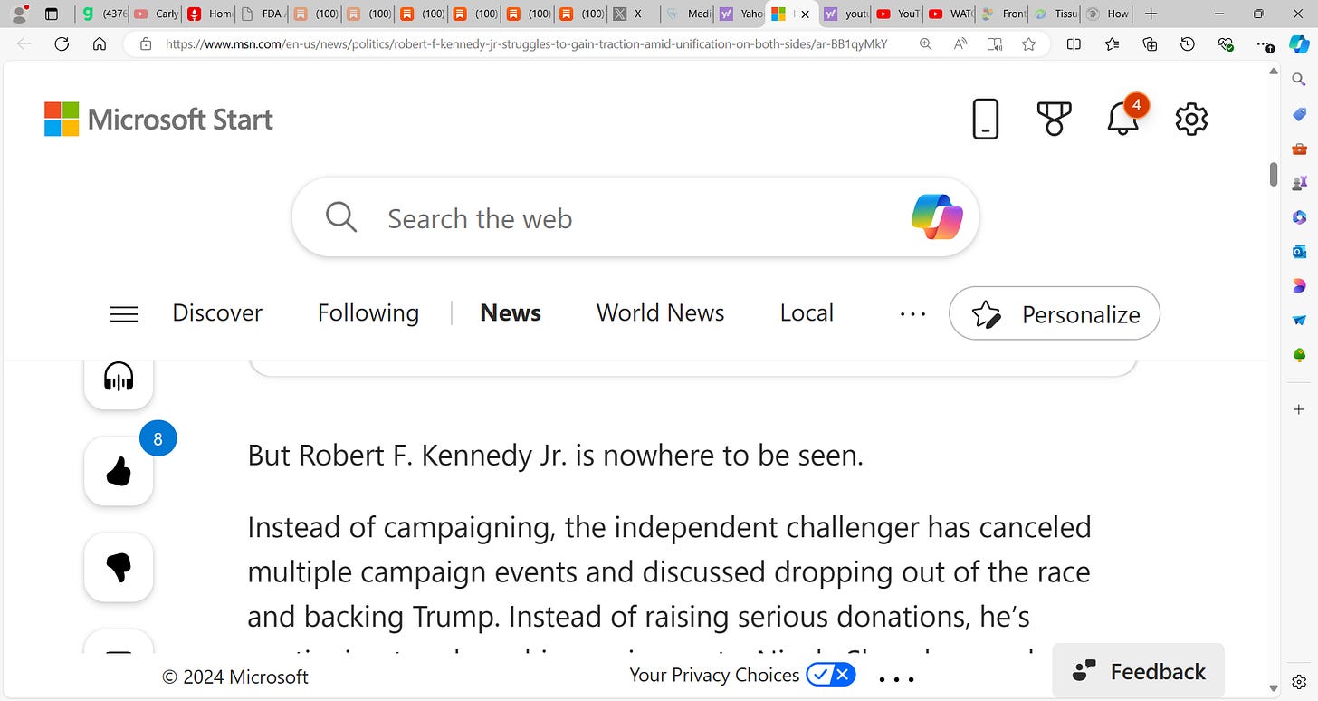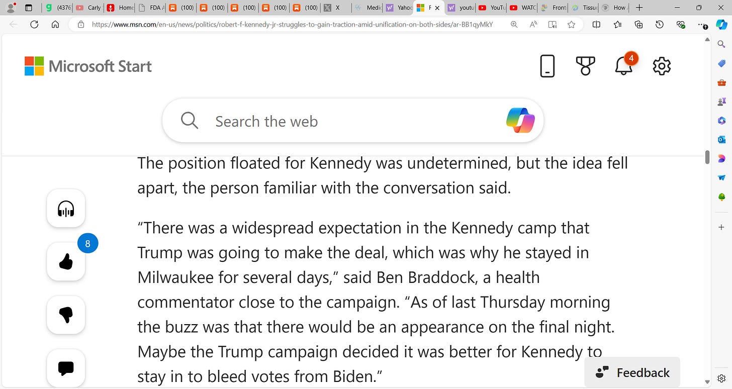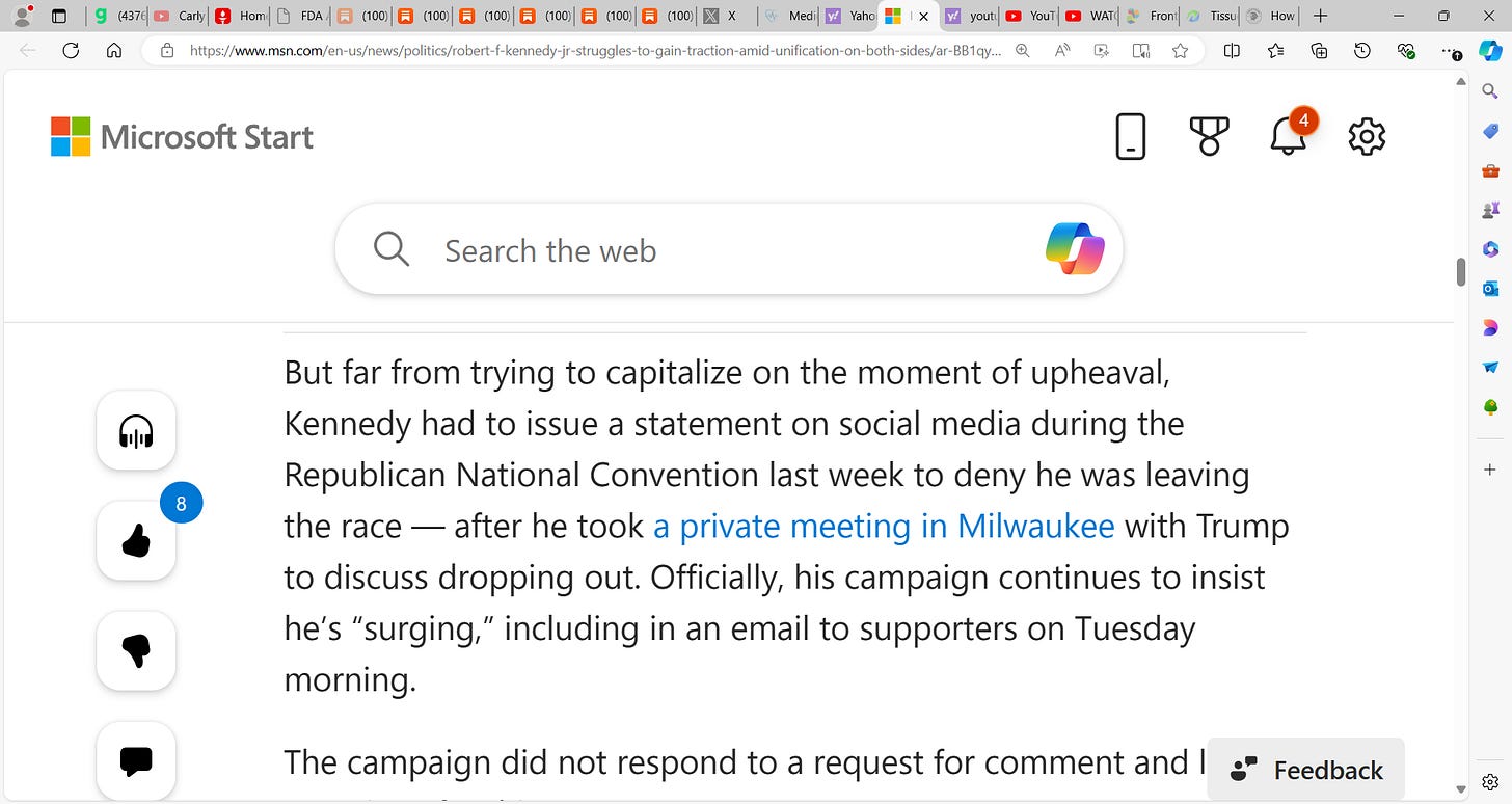 Robert Kennedy Jr. struggles politically as Trump surges & Harris with ZERO (0) delegates, seeks to step into Biden's void; Is Kennedy Jr. backing Trump? Maybe! Trump must be