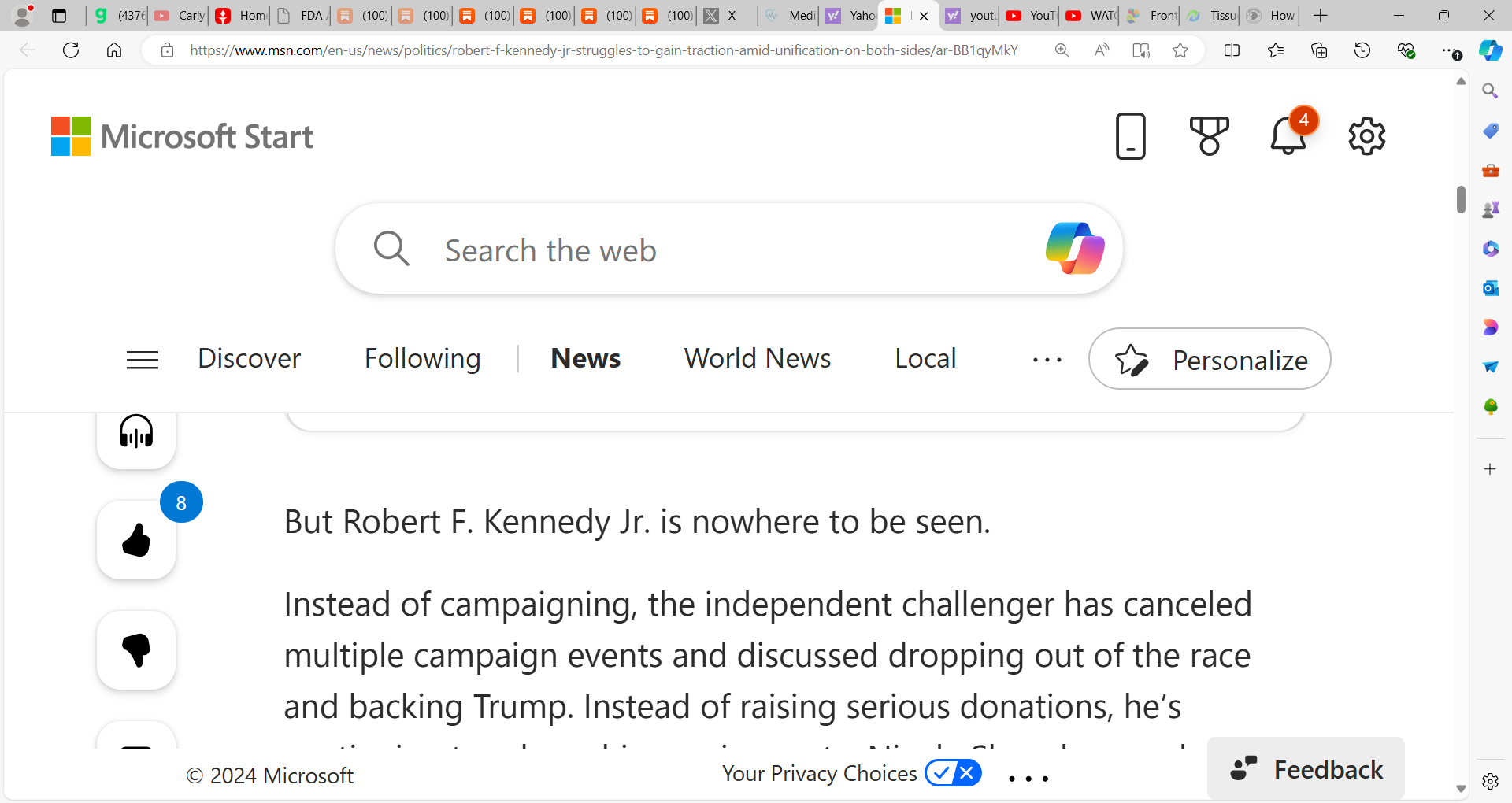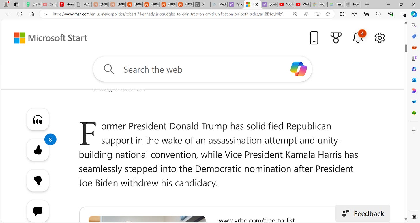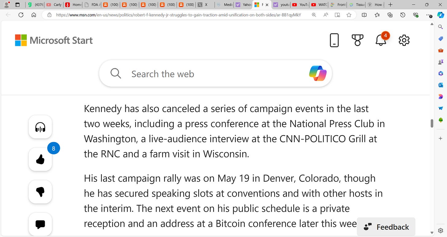 Robert Kennedy Jr. struggles politically as Trump surges & Harris with ZERO (0) delegates, seeks to step into Biden's void; Is Kennedy Jr. backing Trump? Maybe! Trump must be