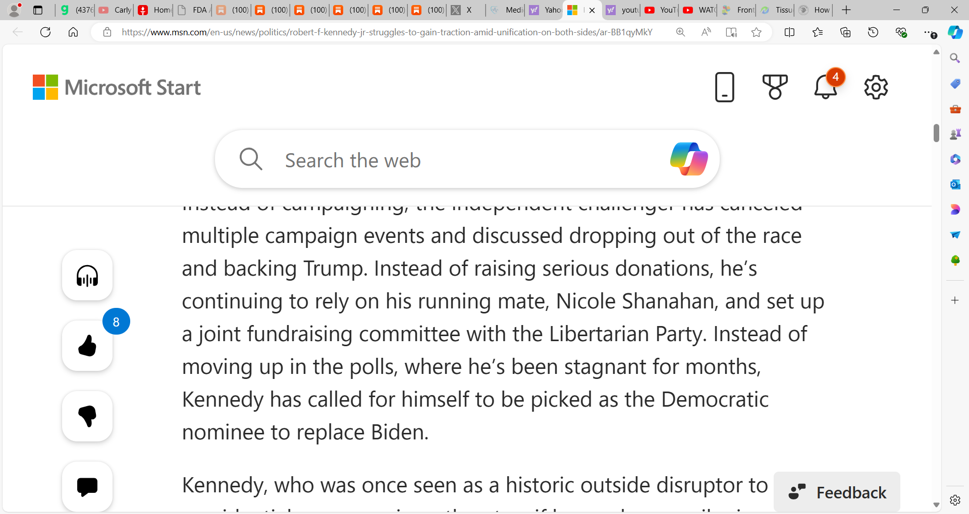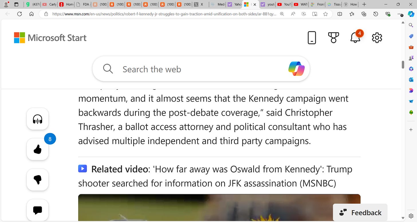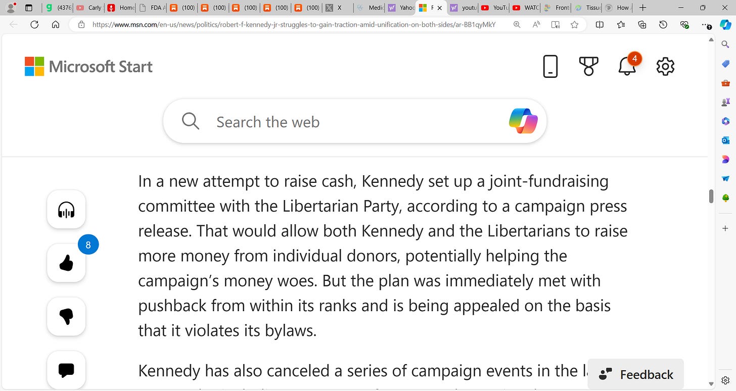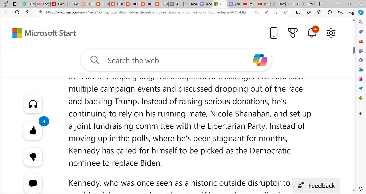 Kennedy Jr. can add to the debate, wants to serve, and I believe while I do not support politically, is a good man, a good American, will serve strong and do good by America. Trump must be open to this and in my own way, I will work behind the scenes to promote Robert. I think he is exceptional, just as a democrat and liberal, not my cup of tea. I think one area he lacks is his VP having airtime and yes, they, the putrid media, have shut Kennedy and Nicole Shanahan out but they should do more interviews to showcase themselves.
