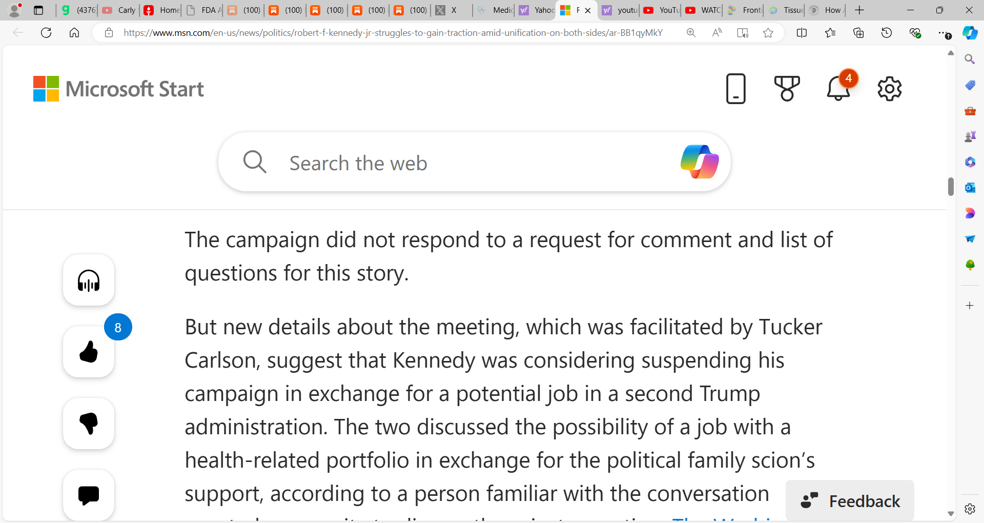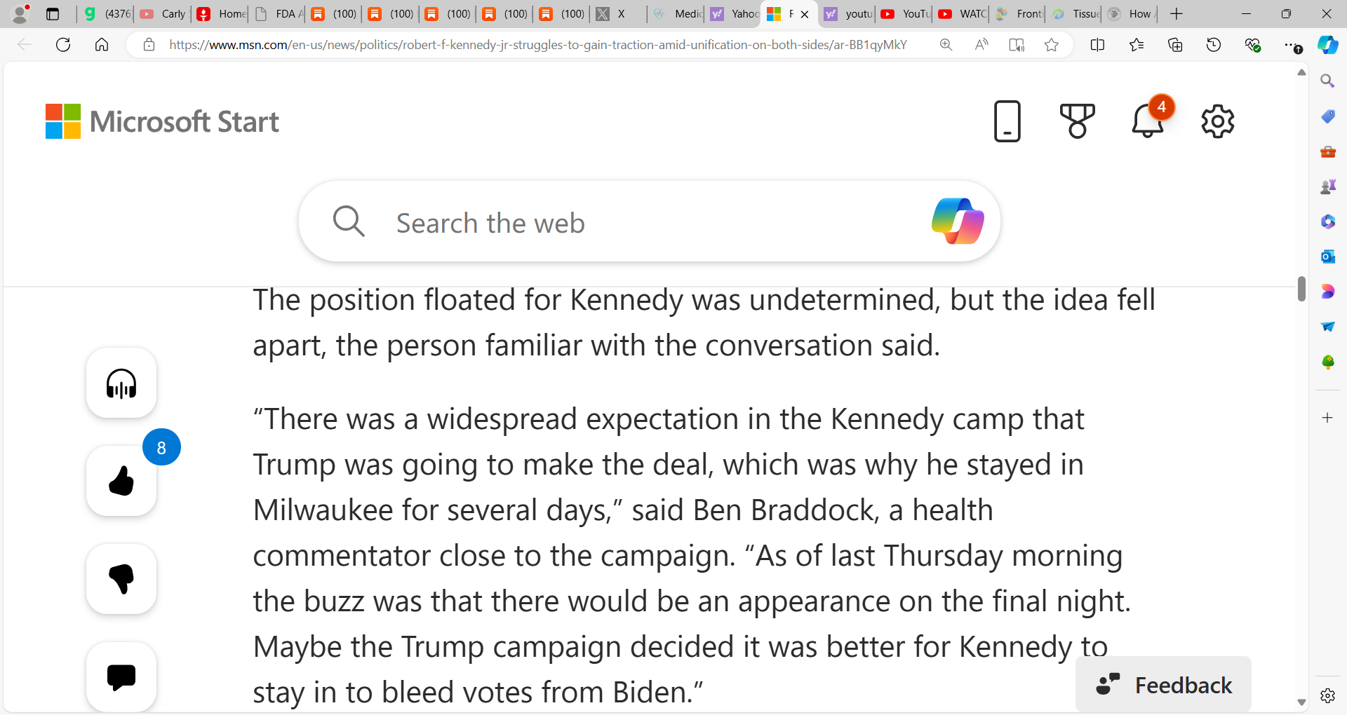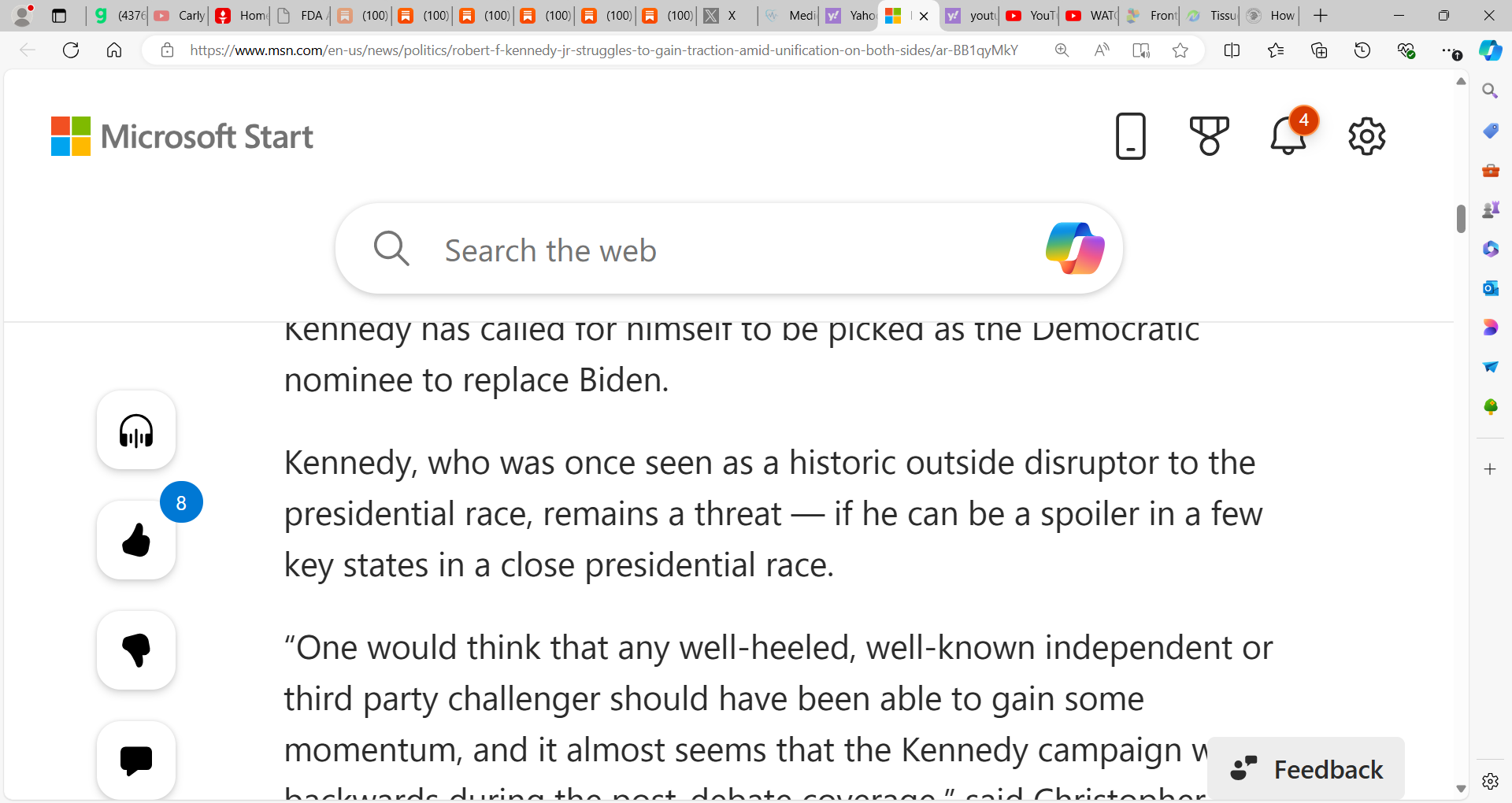 Kennedy Jr. can add to the debate, wants to serve, and I believe while I do not support politically, is a good man, a good American, will serve strong and do good by America. Trump must be open to this and in my own way, I will work behind the scenes to promote Robert. I think he is exceptional, just as a democrat and liberal, not my cup of tea. I think one area he lacks is his VP having airtime and yes, they, the putrid media, have shut Kennedy and Nicole Shanahan out but they should do more interviews to showcase themselves.
