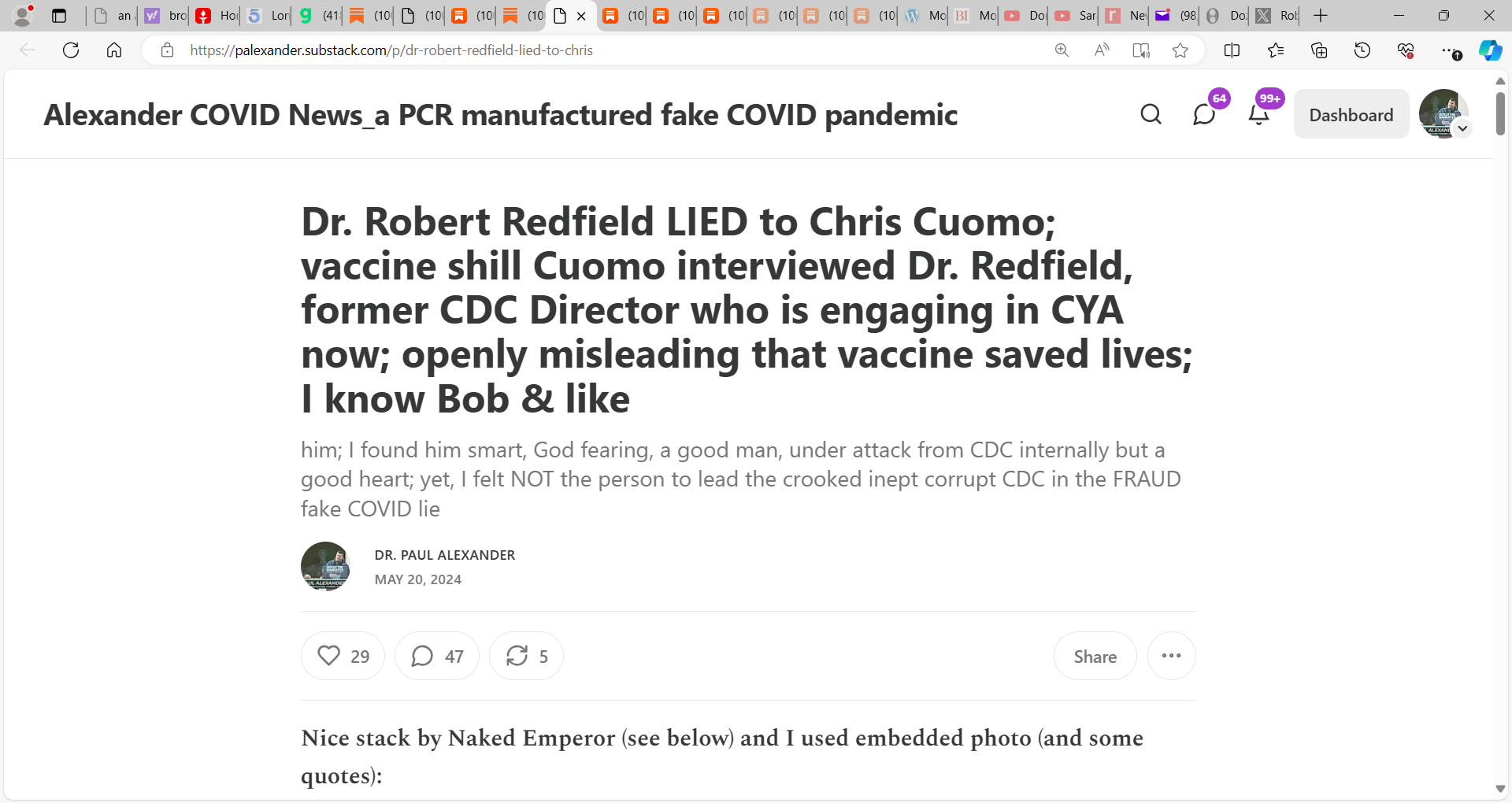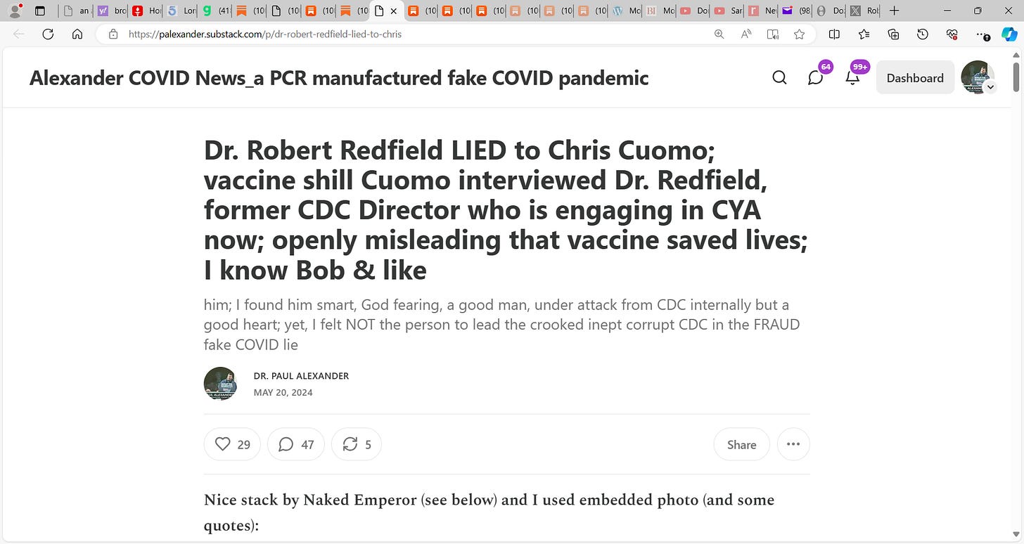 You embarrassed yourself and I have supported you and still do like you, I think a misunderstood person, vilified wrongfully in the media, I sensed in our meetings, talks that you wanted to do good by America but was dealing with so much madness inside of CDC and its corrupted MMWR reports, and was weak as CDC top brass were fucking you as the head of CDC, yet you are 100% flat wrong and did a disservice to the American people here…lying about the Malone vaccine.