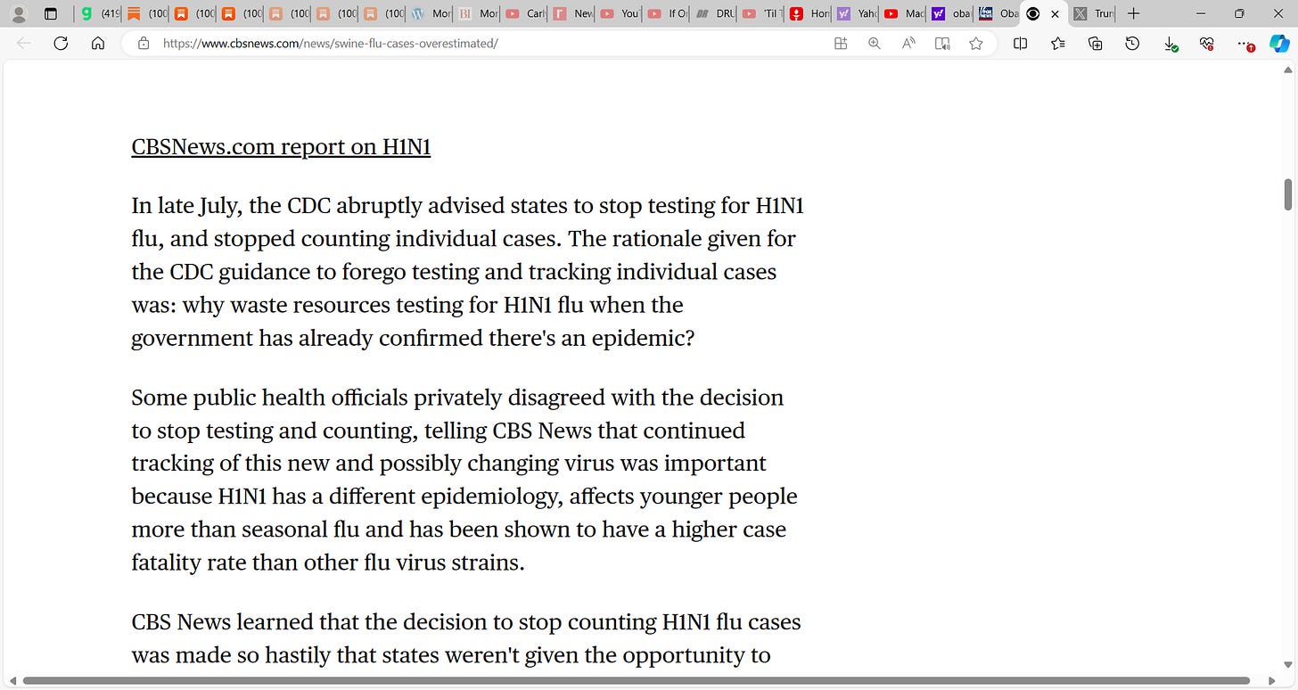 Reporting and testing were SHUT down by Obama and Biden early in 2009 H1N1, just few months into the H1N1 in 2009, early in Obama’s Presidency. Why? Why did he Obama instruct CDC to do this (stop everything in its tracks) and why did CDC follow his orders IF this was a real pandemic?