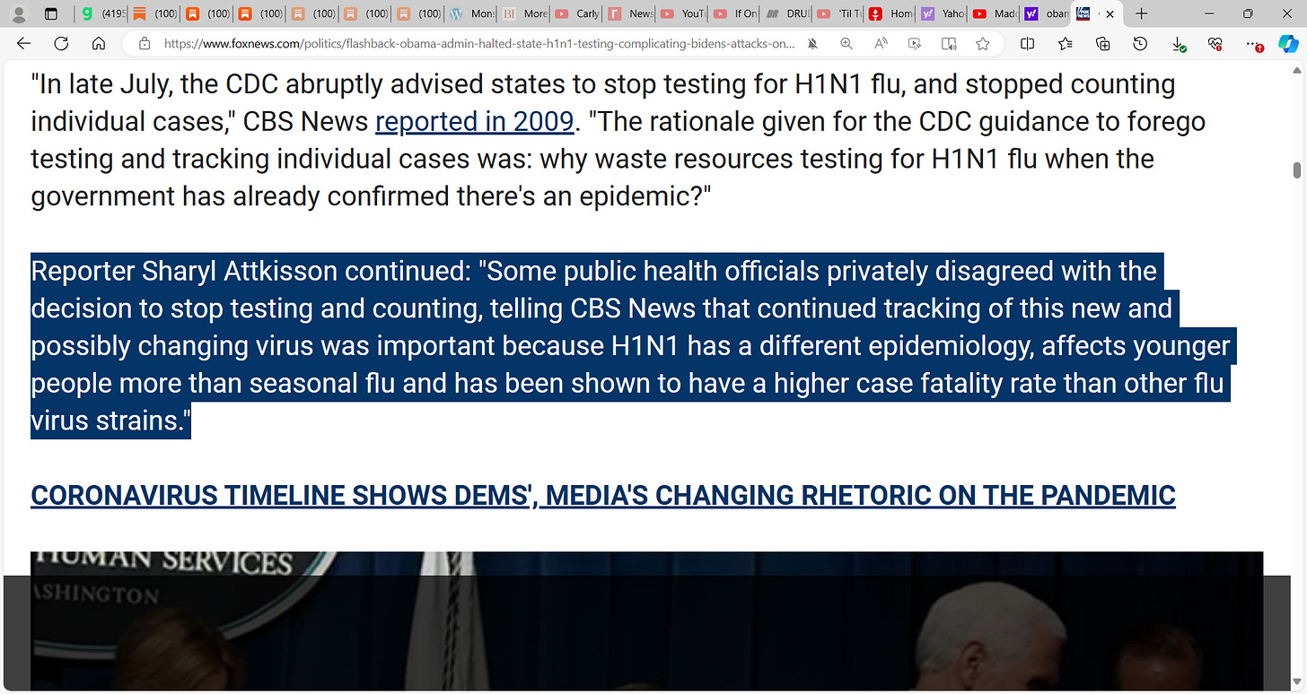 So let me get to the issue at hand. Why did the CDC and NIH and FDA and media fuck Trump over ‘not testing enough’ crap daily (using a false positive PCR process) yet were silent when Obama shut down testing during H1N1? Is it because the CDC’s job was to help Obama yet fuck Trump? CDC sure conspired to fuck Trump. This is a key question as Trump was pilloried over not testing enough…