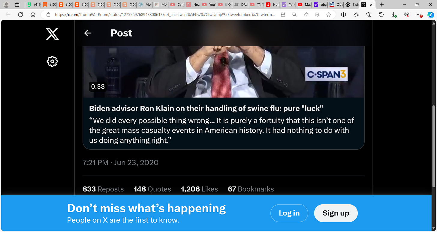 Ron Klain told us that Obama & Biden did everything WRONG with the fake 2009 H1N1 swine flu & IMO it was a pandemic that 'never was'...yet the real question is why did Obama & Biden instruct CDC to
