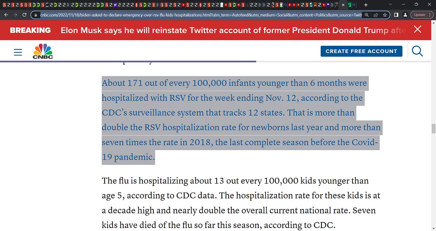Yet has there actually been a surge in RSV or is this idiosyncratic? It appears that there is an increase. There is a reported 7-times increased risk of hospital admission for RSV in 2022 (in infants and children) over prior years (2018)? Why?