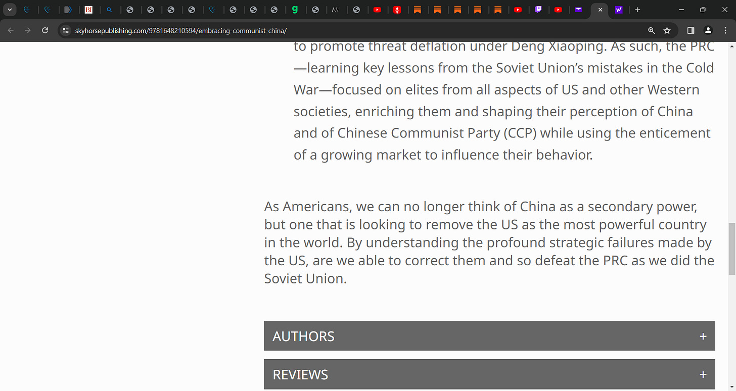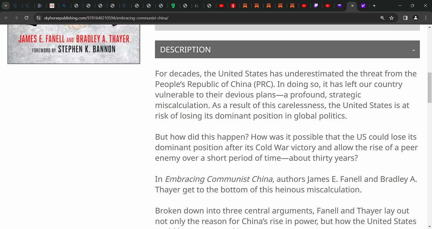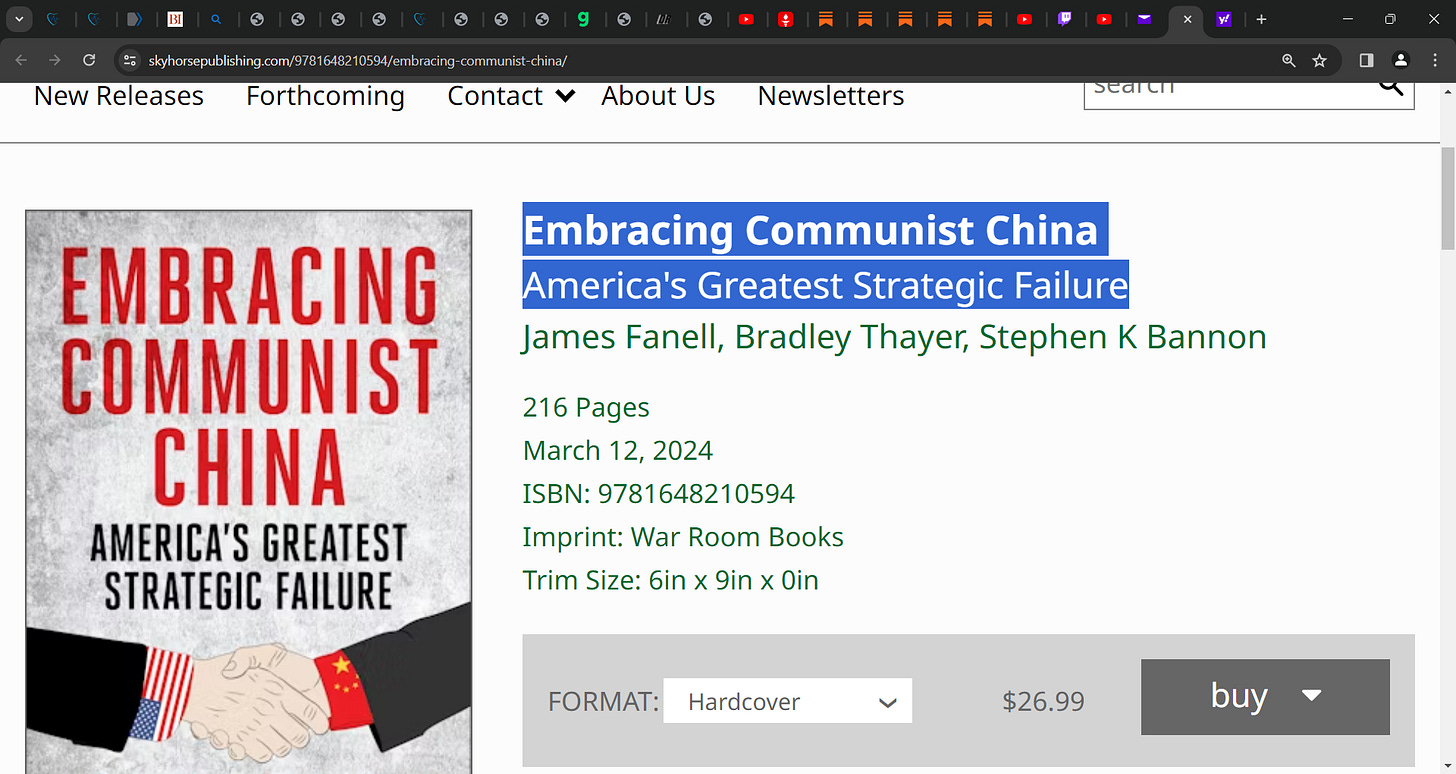 'Embracing Communist China; America's Greatest Strategic Failure'; we always keep an eye on Russia and never sleep with both eyes closed, but it is China, Trump was right! Bannon's book is topnotch