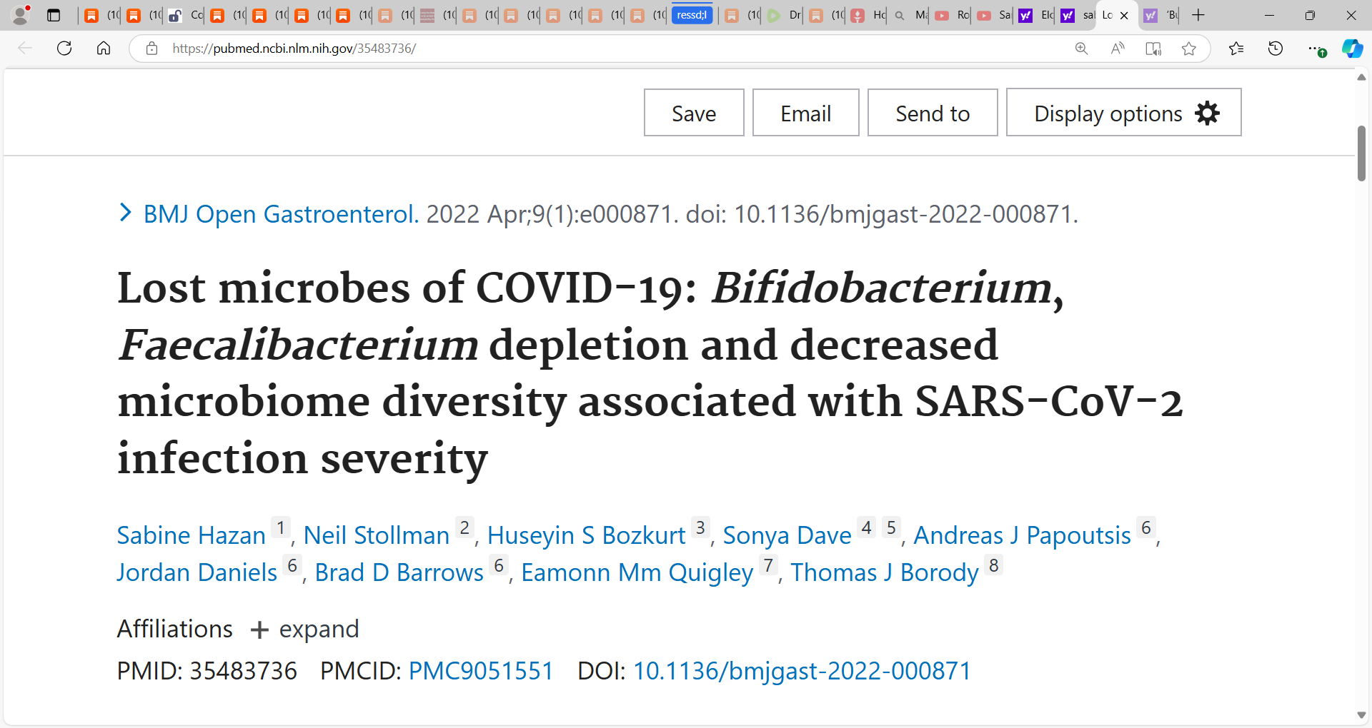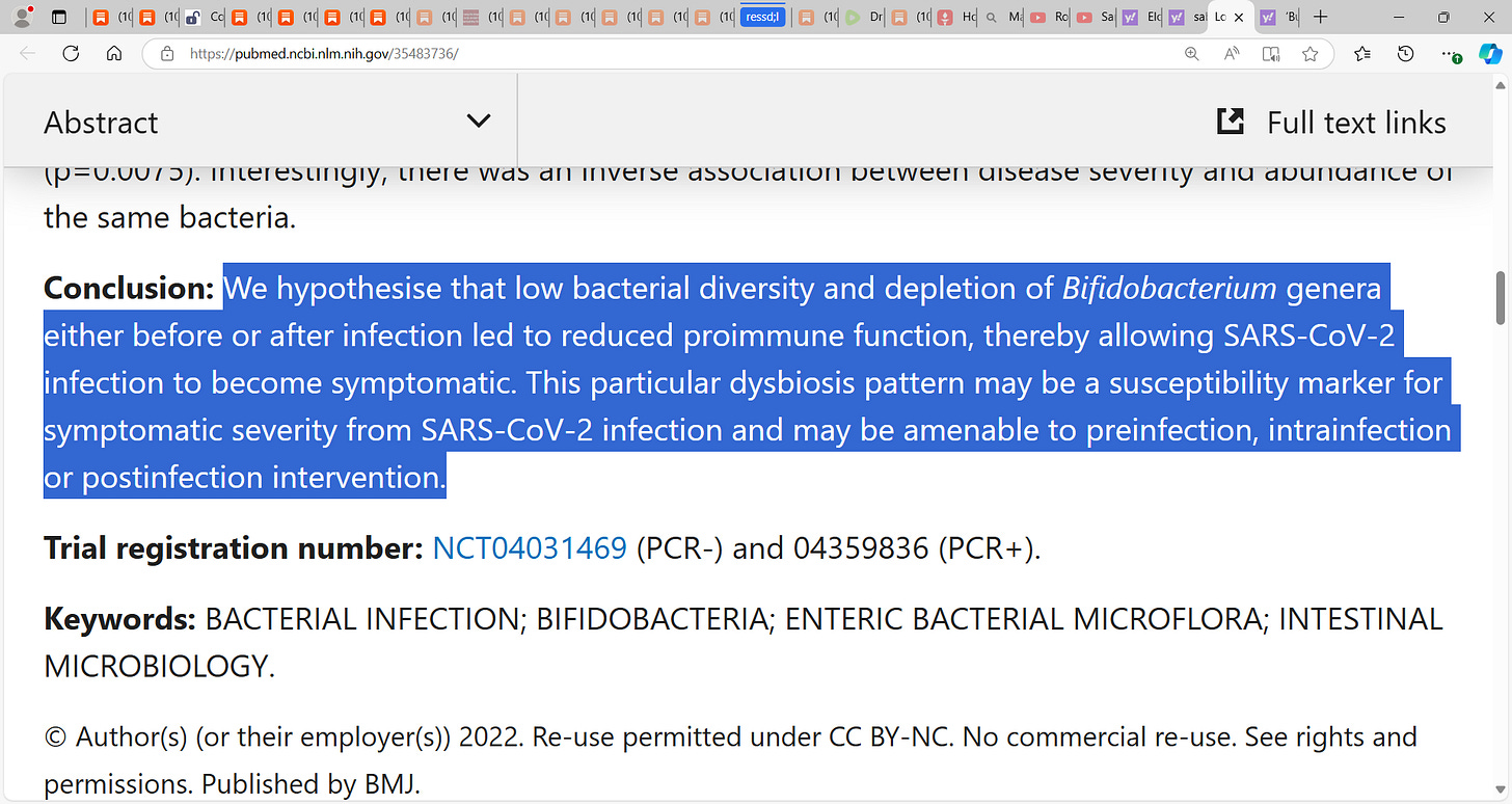 Sabine Hazan has done exceptional work on Bifidobacterium, Faecalibacterium depletion and decreased microbiome diversity associated with SARS-CoV-2 infection severity & now Rubio-Casillas Alberto