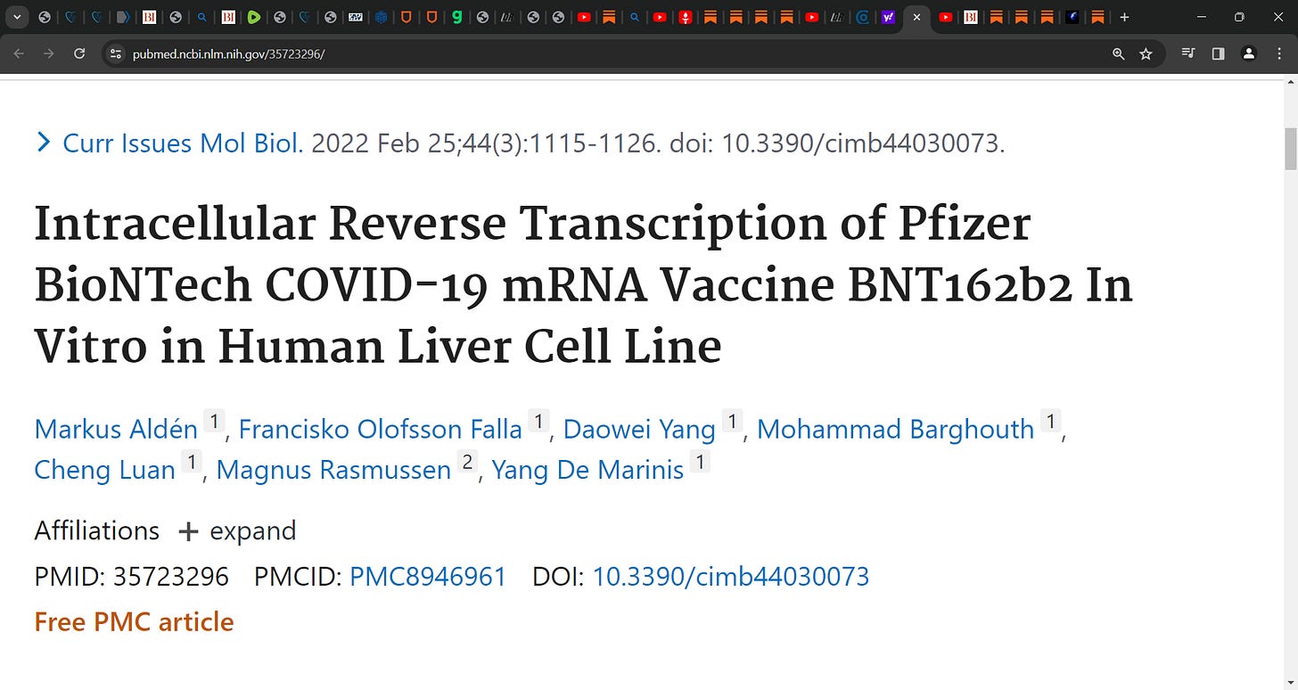 SOURCE: https://pubmed.ncbi.nlm.nih.gov/35723296/Alexander COVID News-Dr. Paul Elias Alexander's Newsletter is a reader-supported publication. To receive new posts and support my work, consider becoming a free or paid subscriber. ‘a recent study showed that SARS-CoV-2 RNA can be reverse-transcribed and integrated into the genome of human cells. In this s…