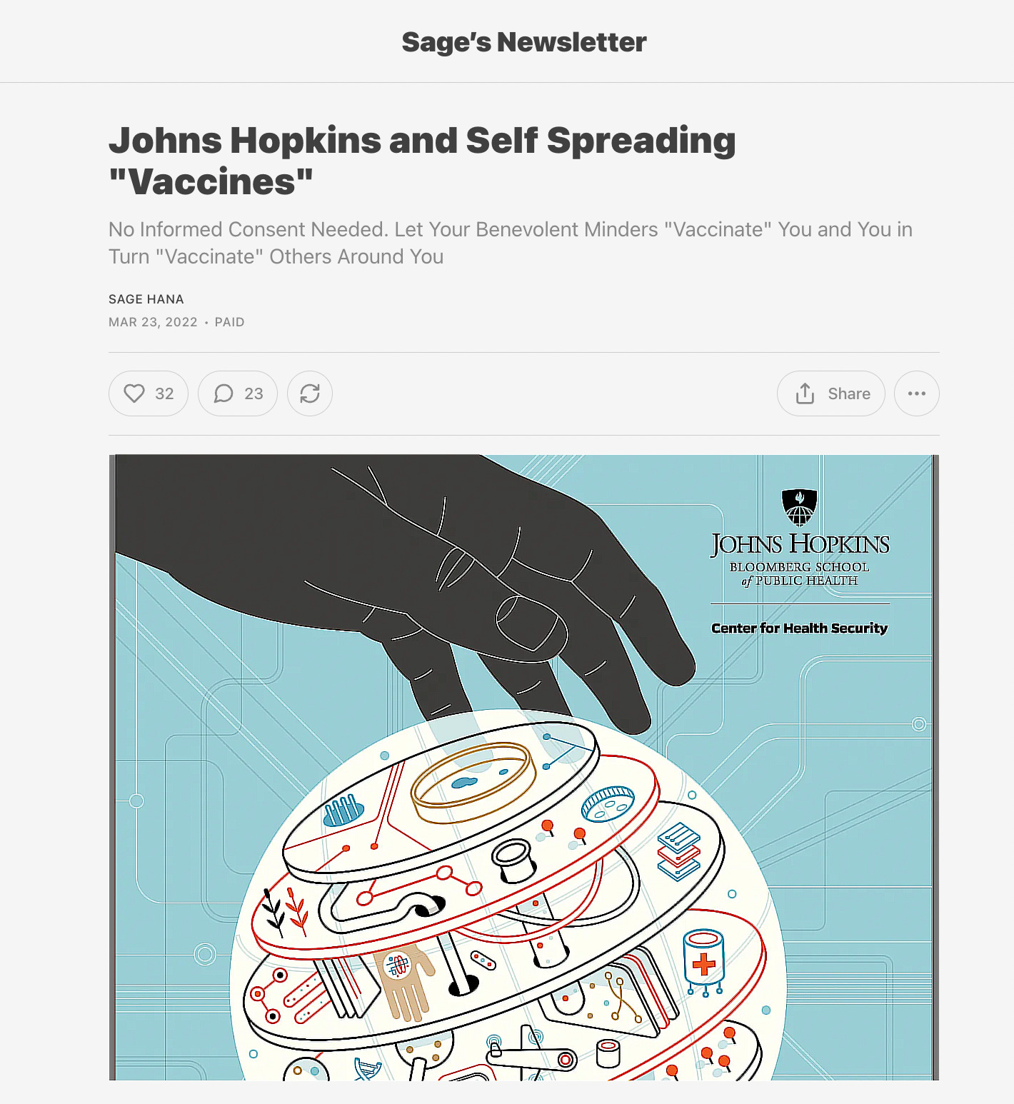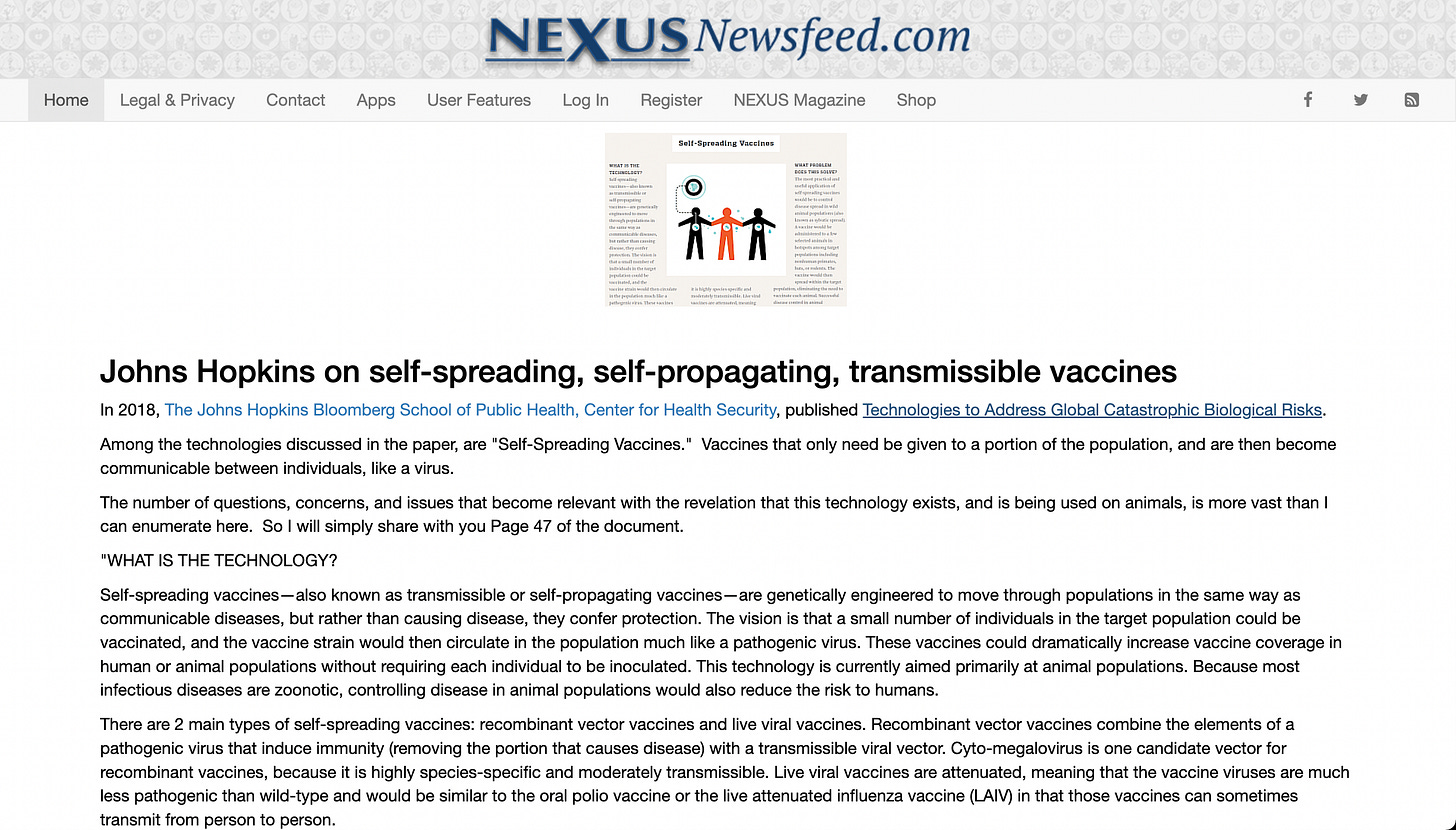 Johns Hopkins on self-spreading, self-propagating, transmissible vaccines