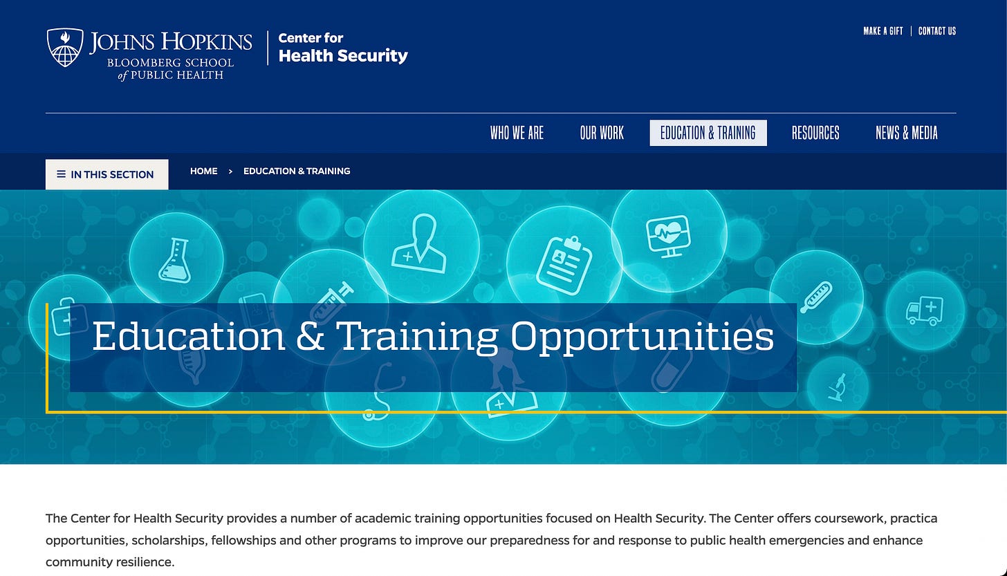 In 2018, The Johns Hopkins Bloomberg School of Public Health, Center for Health Security, published Technologies to Address Global Catastrophic Biological Risks.