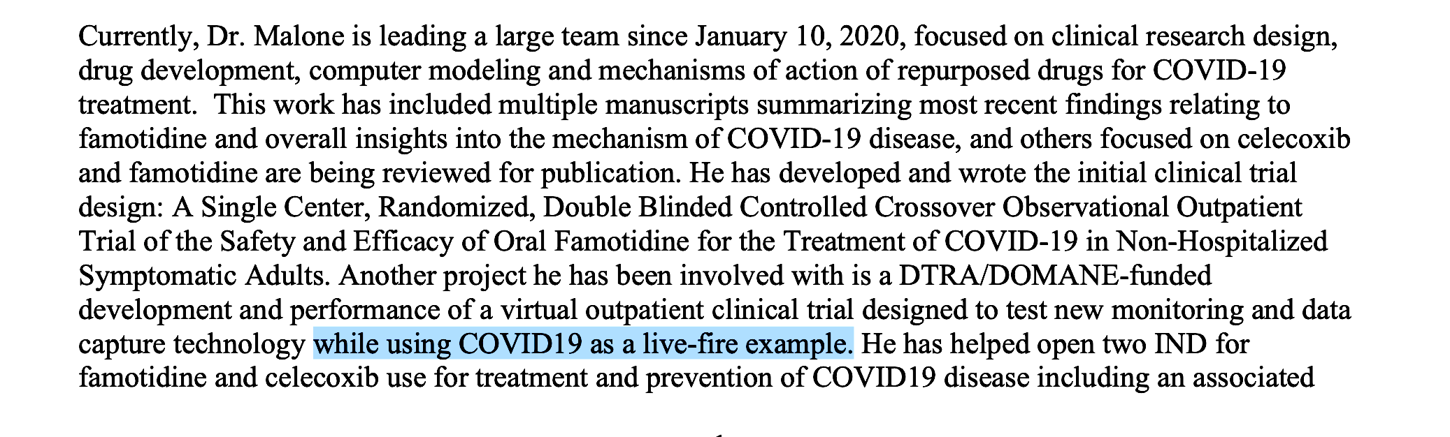 I performed a threat assessment during the first week of January, 2020 concerning what I was able to discover regarding SARS-CoV-2, and determined that there was insufficient time to develop a safe and effective vaccine for the virus (and also noted the horrible history of prior attempts to develop human vaccines for other coronaviruses), and then spun up a highly skilled team (and got them funded) focusing on repurposing existing licensed drugs for treating the disease.