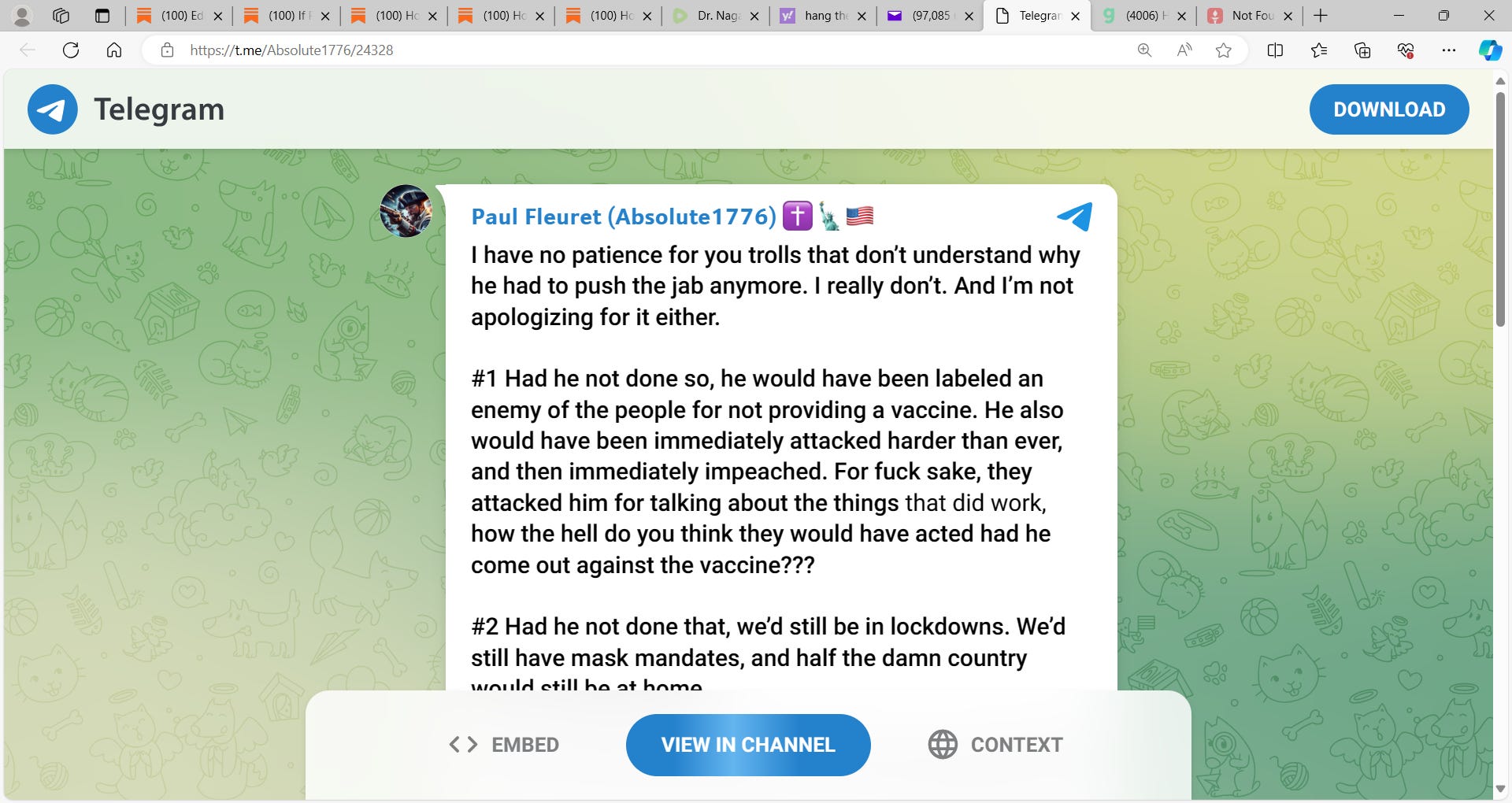 ๐ฃ๐ฎ๐๐น ๐๐น๐ฒ๐๐ฟ๐ฒ๐ (๐๐ฏ๐๐ผ๐น๐๐๐ฒ๐ญ๐ณ๐ณ๐ฒ) said POTUS Trump (45) had NO CHOICE but to push out the mRNA vaccine! I find the points are good, interesting but Paul F misses 4 key points 1)it has