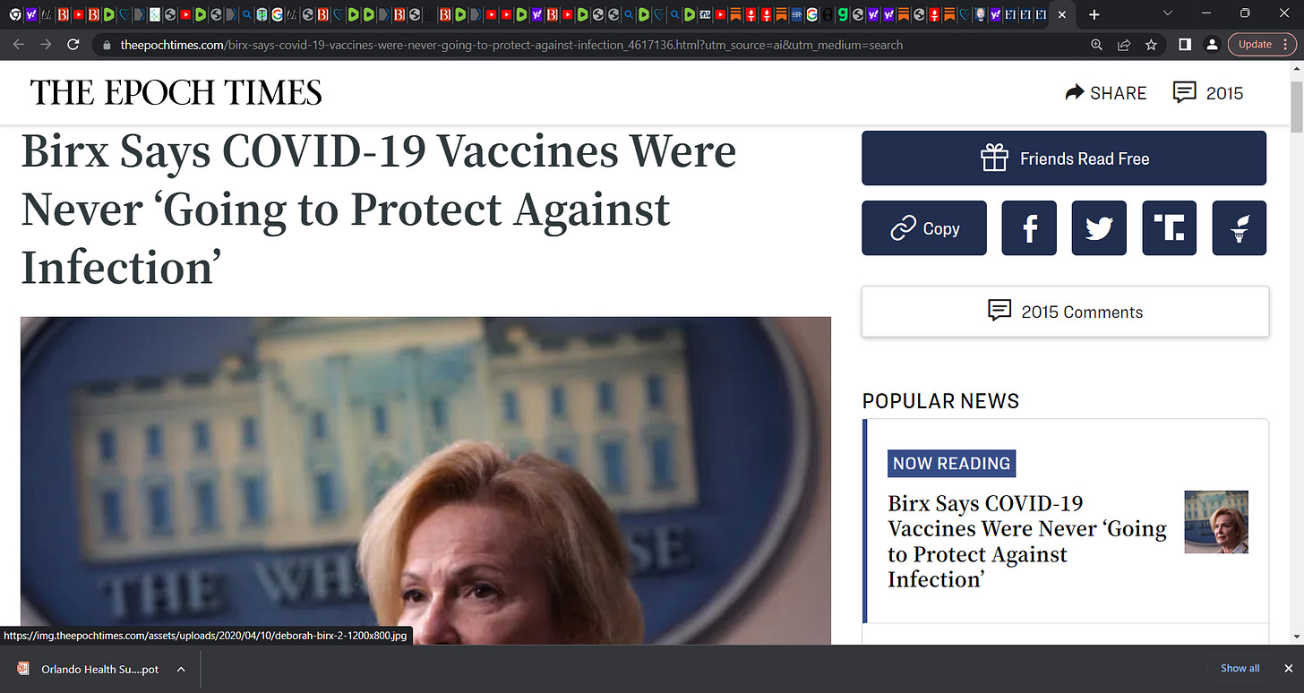 Scarf lady Birx went from “This is one of the most highly-effective vaccines we have in our infectious disease arsenal. And so that’s why I’m very enthusiastic about the COVID vaccine,” to “I knew...