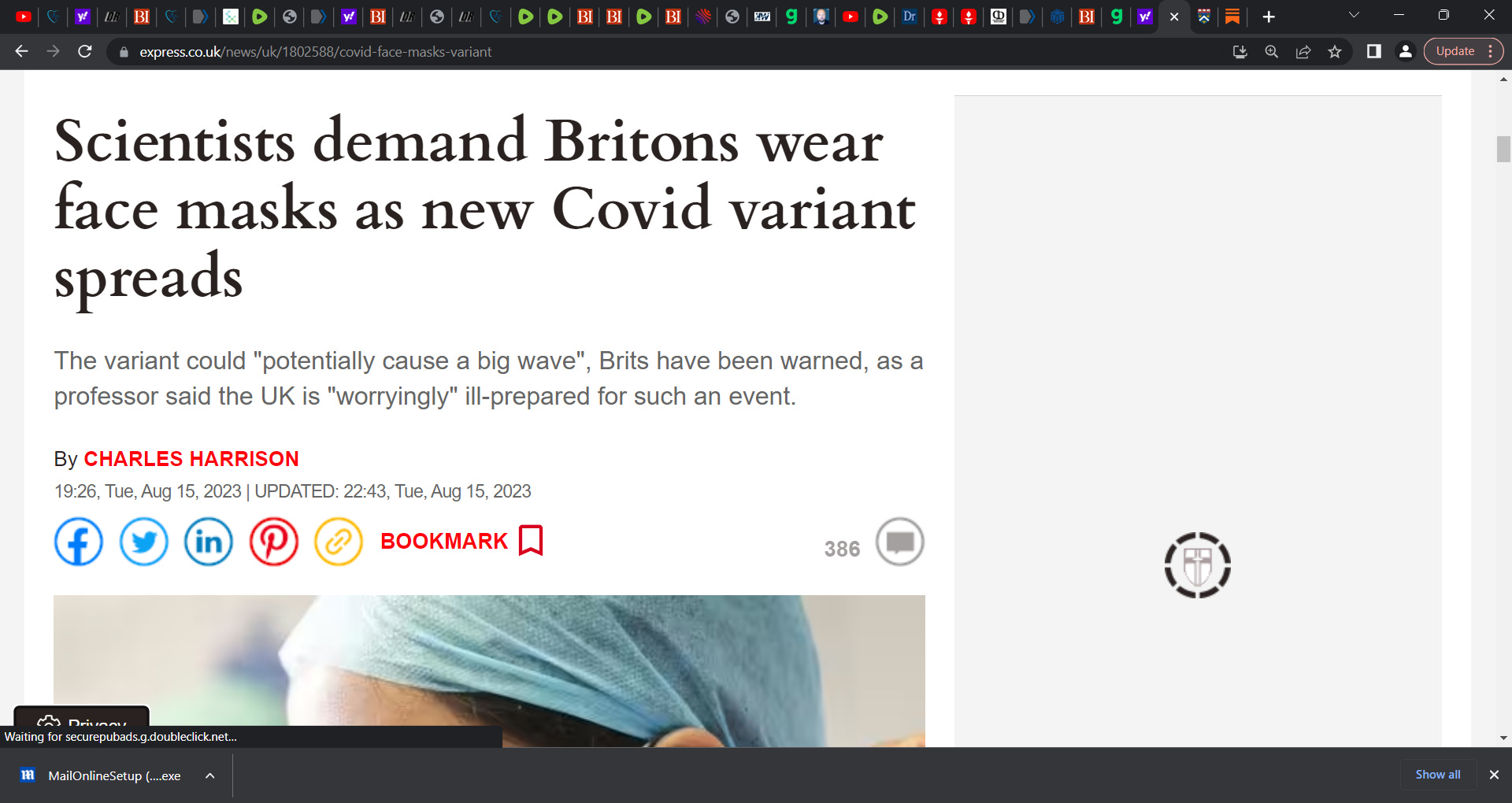 'Scientists demand Britons wear face masks as new Covid variant BA.X spreads'; what a load of specious drivel, garbage, they all know, SAGE, CDC, NIH, FDA, Health Canada, PHAC that masks are JUNK,