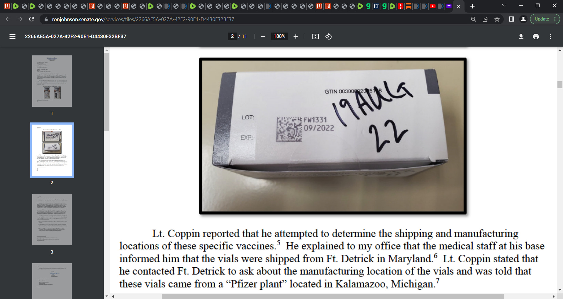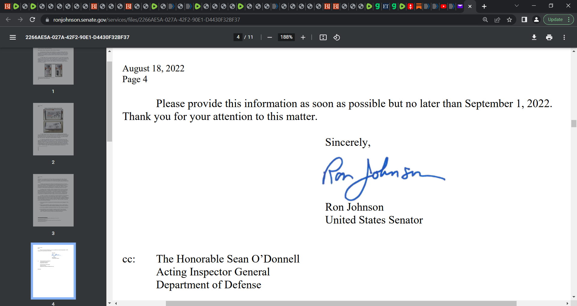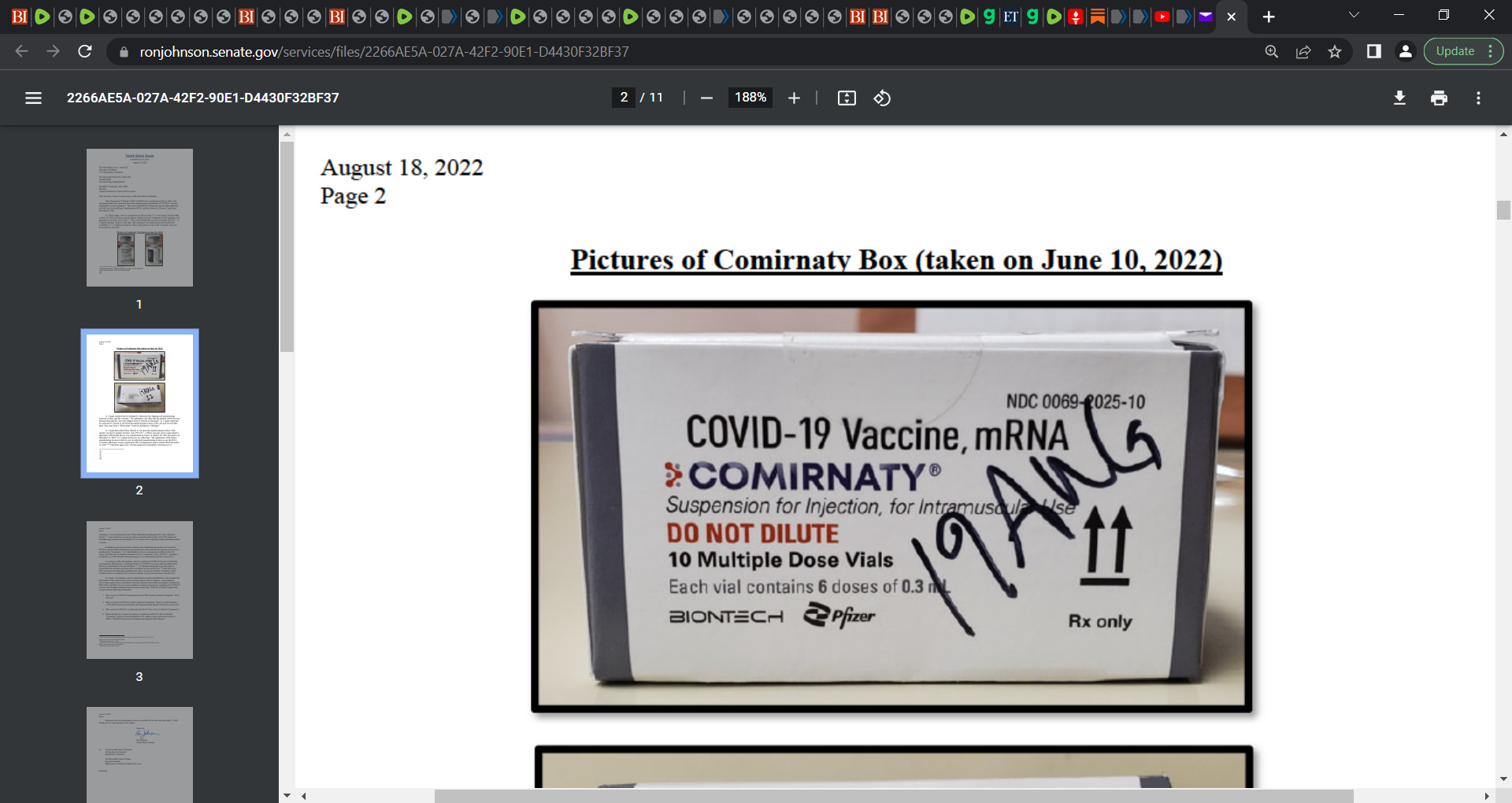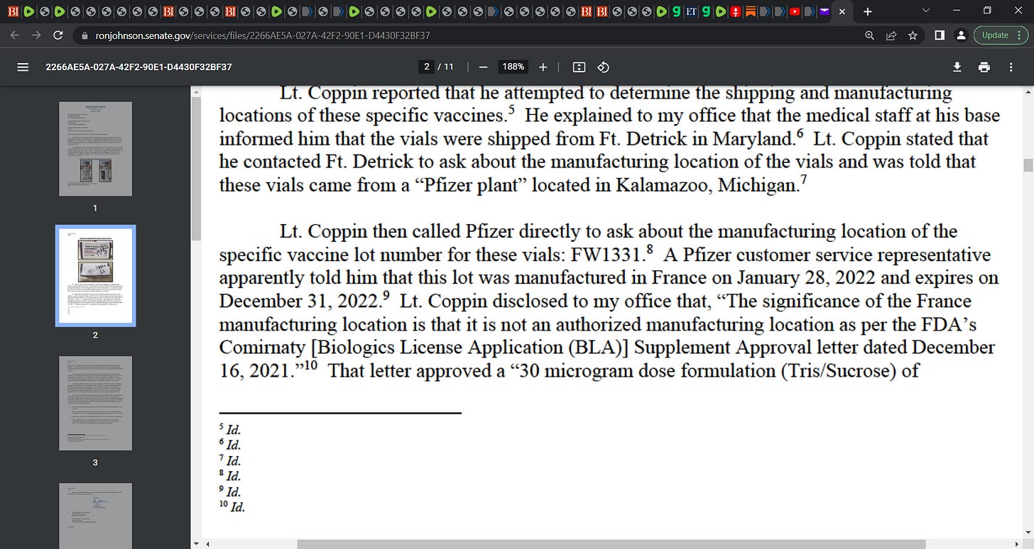 Sen. Johnson to DoD, FDA, CDC: "Whistleblower Allegations about COVID-19 Vaccine Mislabeling and Unauthorized Manufacturing Must be Fully Addressed; On Thursday, U.S. Sen. Ron Johnson (R-Wis.) sent a