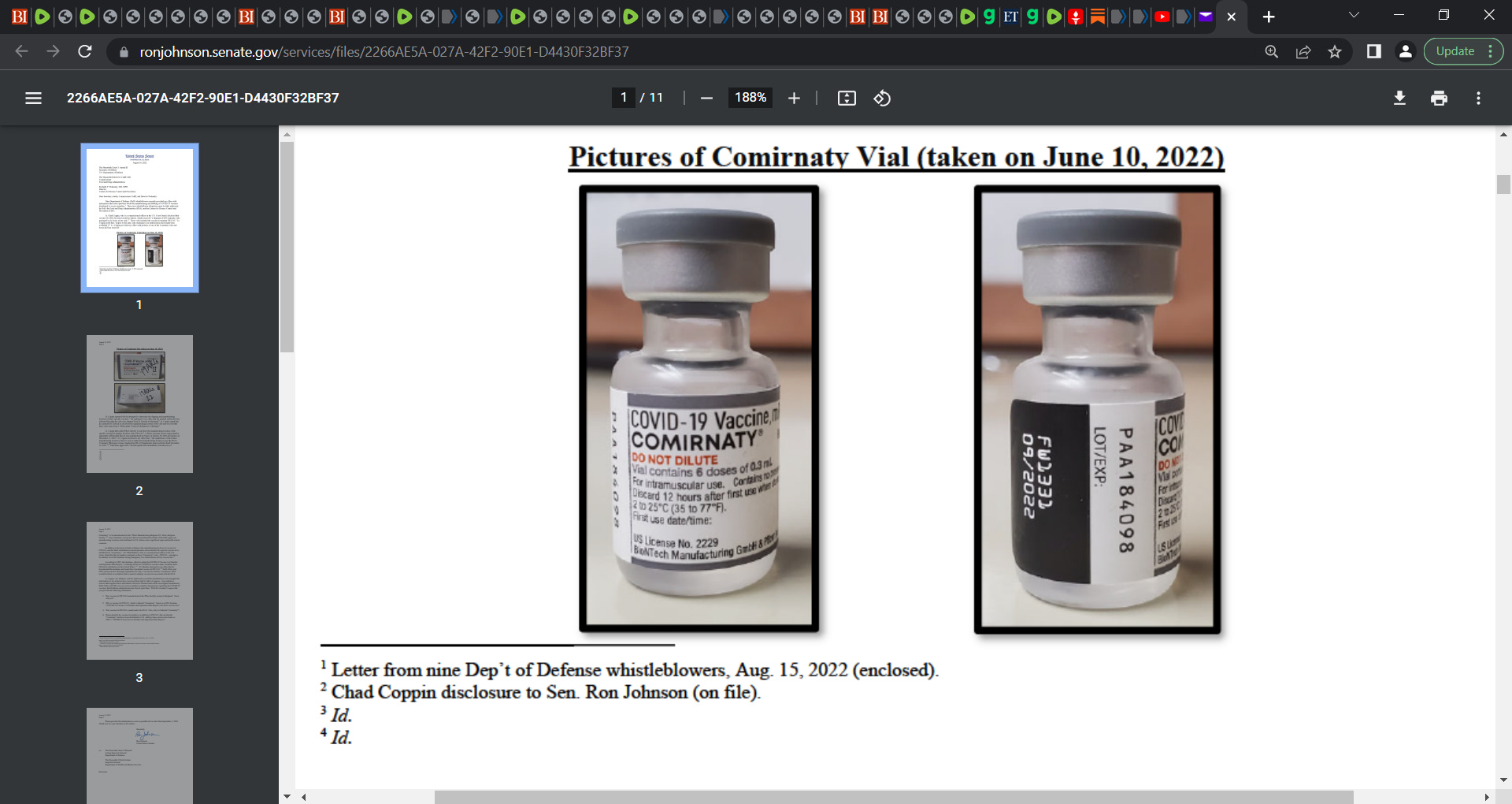 Once again proving that no American will actually receive a vial of Comirnaty until the FDA approves it on the childhood schedule and Pfizer is not held liable for these injuries. If the FDA and Pfizer actually claims these vitals are truly Comirnaty then the injured soldiers and Coast Guard who received these “Comirnaty vials” should take Pfizer to court and sue the crap out of them.