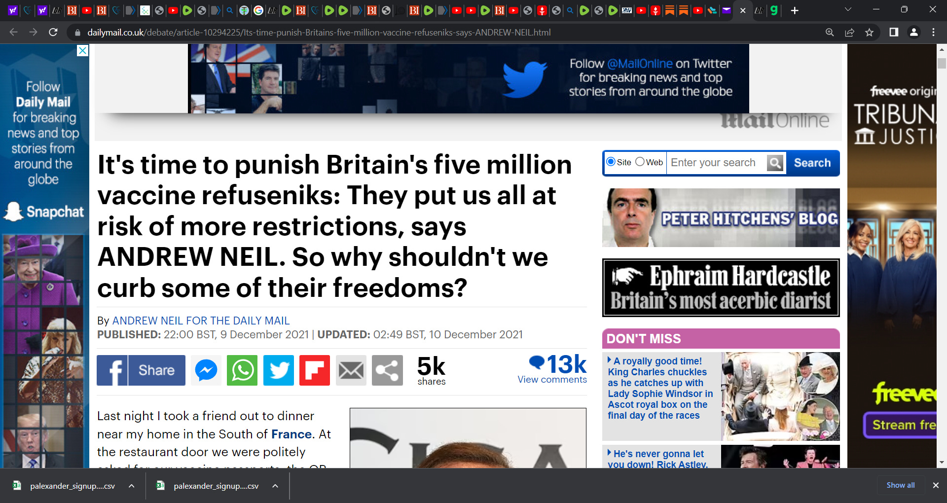 Severely punish all those British UK people who refused the COVID gene injection, says nutcase psychopath ANDREW NEIL; 'It's time to punish Britain's five million vaccine refuseniks: They put us all