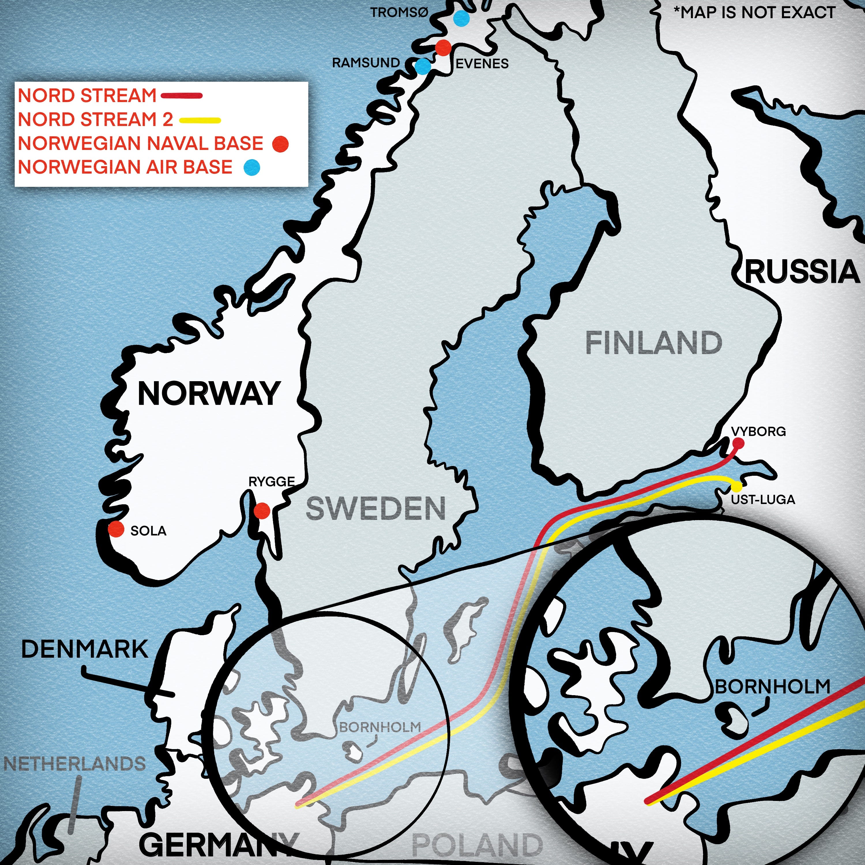 Sometime in March, a few members of the team flew to Norway to meet with the Norwegian Secret Service and Navy. One of the key questions was where exactly in the Baltic Sea was the best place to plant the explosives. Nord Stream 1 and 2, each with two sets of pipelines, were separated much of the way by little more than a mile as they made their run to the port of Greifswald in the far northeast of Germany.