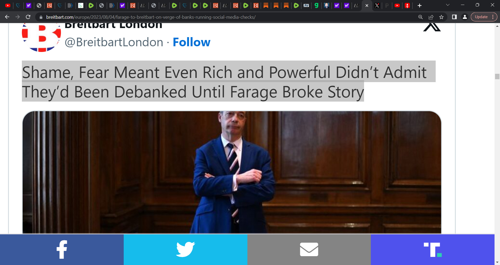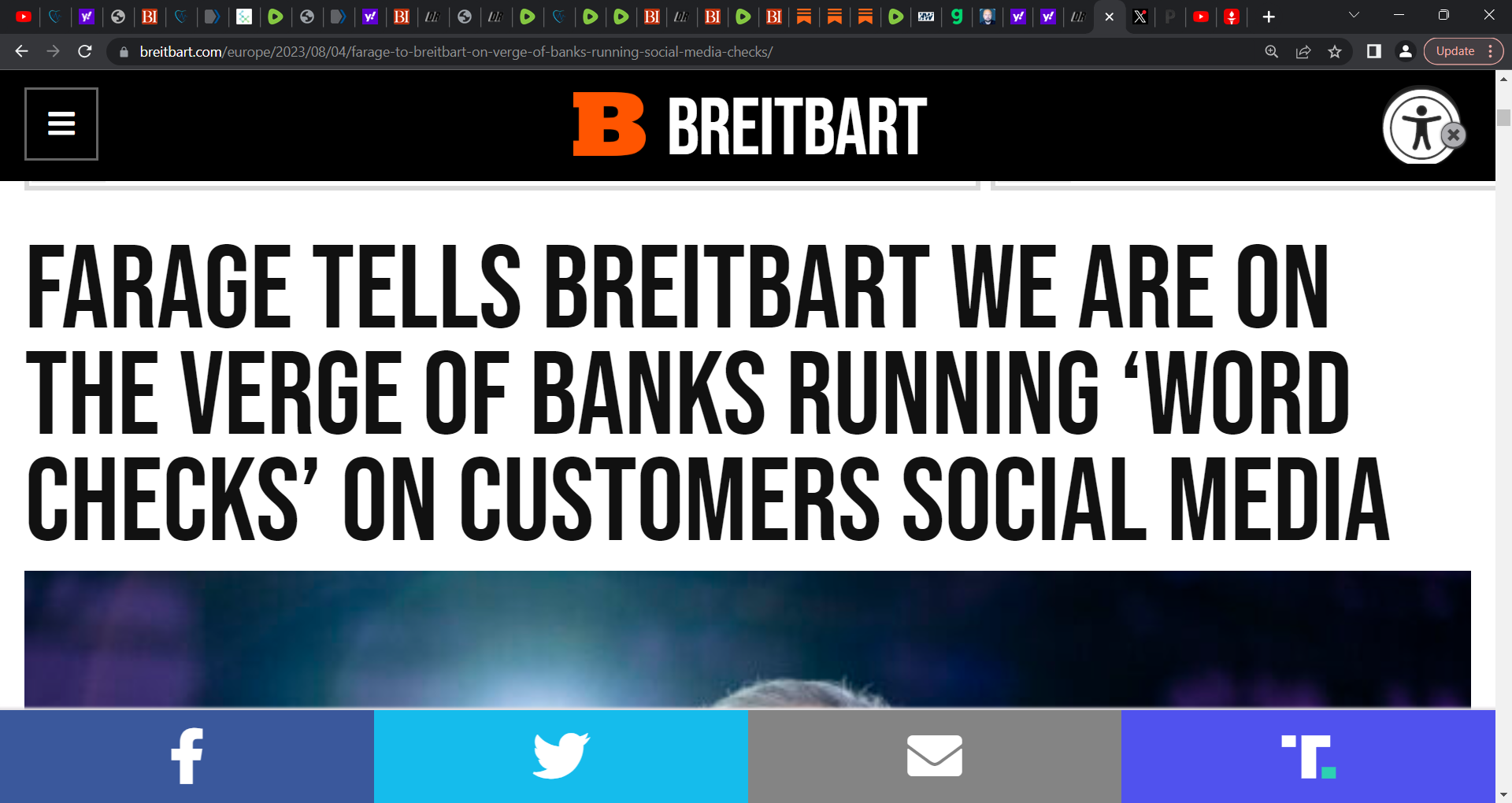 Shame, Fear Meant Even Rich and Powerful Didn’t Admit They’d Been Debanked Until Farage Broke Story; Farage Tells Breitbart we are on the Verge of Banks Running ‘Word Checks’ on Customers Social Media