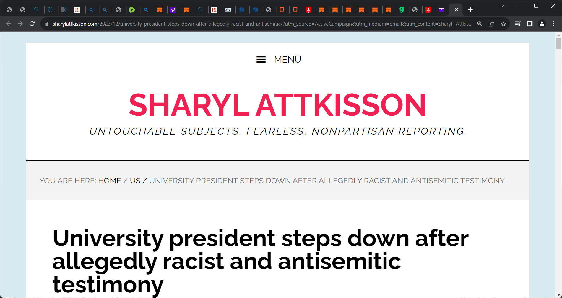 SHARYL ATTKISSON: 'University president steps down after allegedly racist and antisemitic testimony'; in testimony Magill and other university leaders, including the heads of Harvard and MIT
